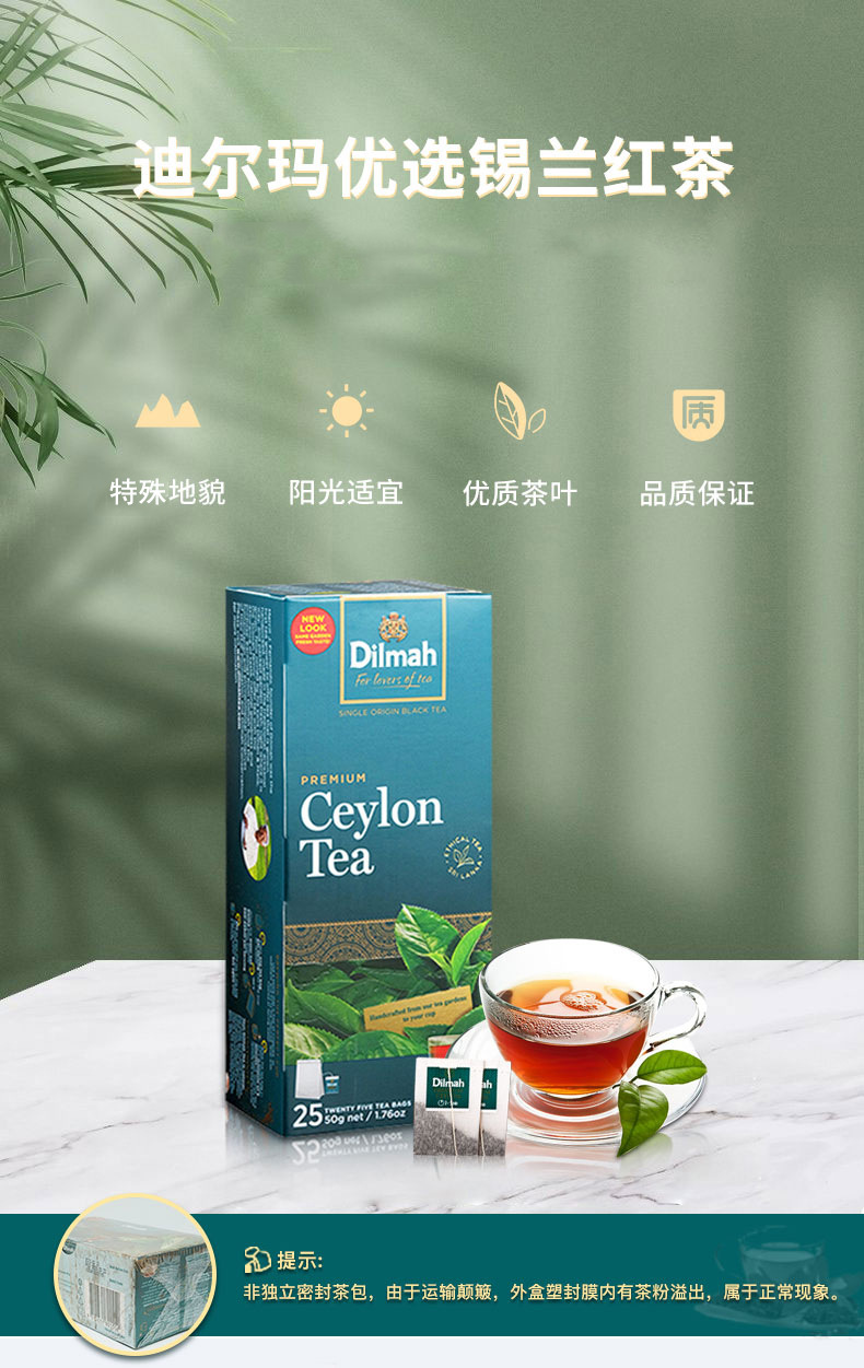 【中欧班列精选】 斯里兰卡迪尔玛原味红茶 原装进口迪尔玛英式早餐冲泡茶包饮品原味红茶 2g*25包/盒