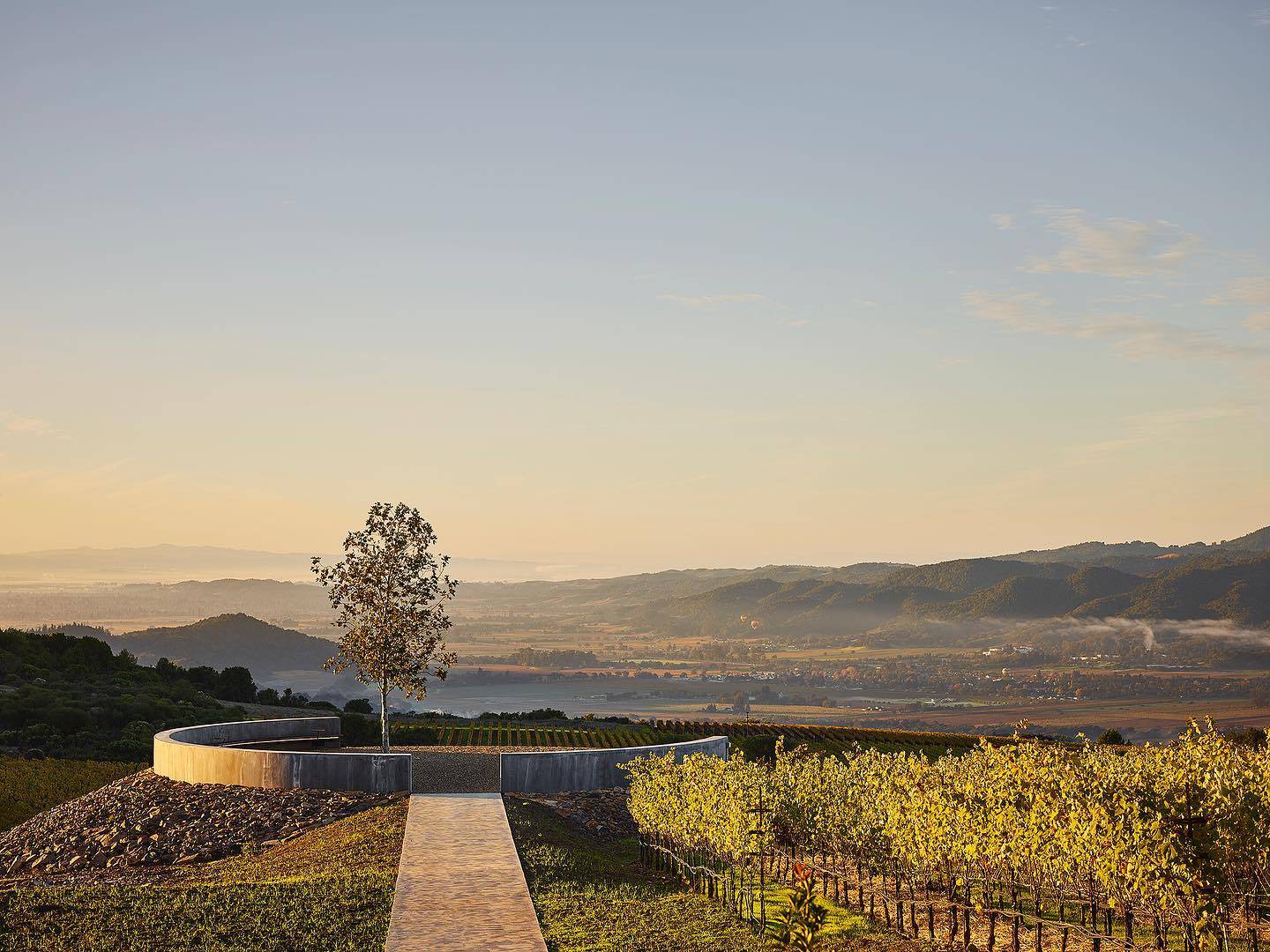 2010年,Chang Family在Pritchard Hill山顶购买了一块年轻的田,周围是一些葡萄酒世界醉耀眼的星辰,Colgin,Ovid,David Arthur等。酒庄被命名为Nine Suns(九日),而这块田的名字便是后羿(Houyi),Chang Family以后羿射日这个中国神话来命名。后羿Houyi坐落在雾线之上,海拔大概在1300英尺。日照充足,而午后会有从湾区而来的冷空气降温。这里的土壤富含岩石,开垦难度大但是出产的酒深度佳。