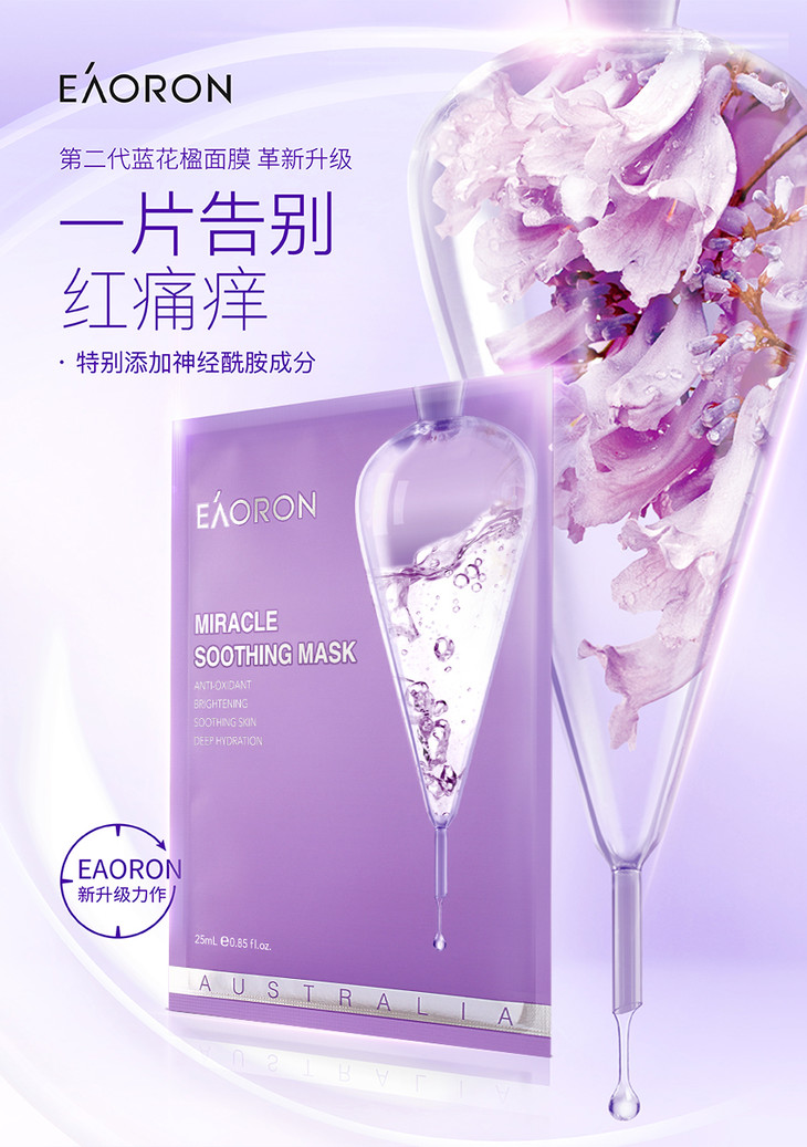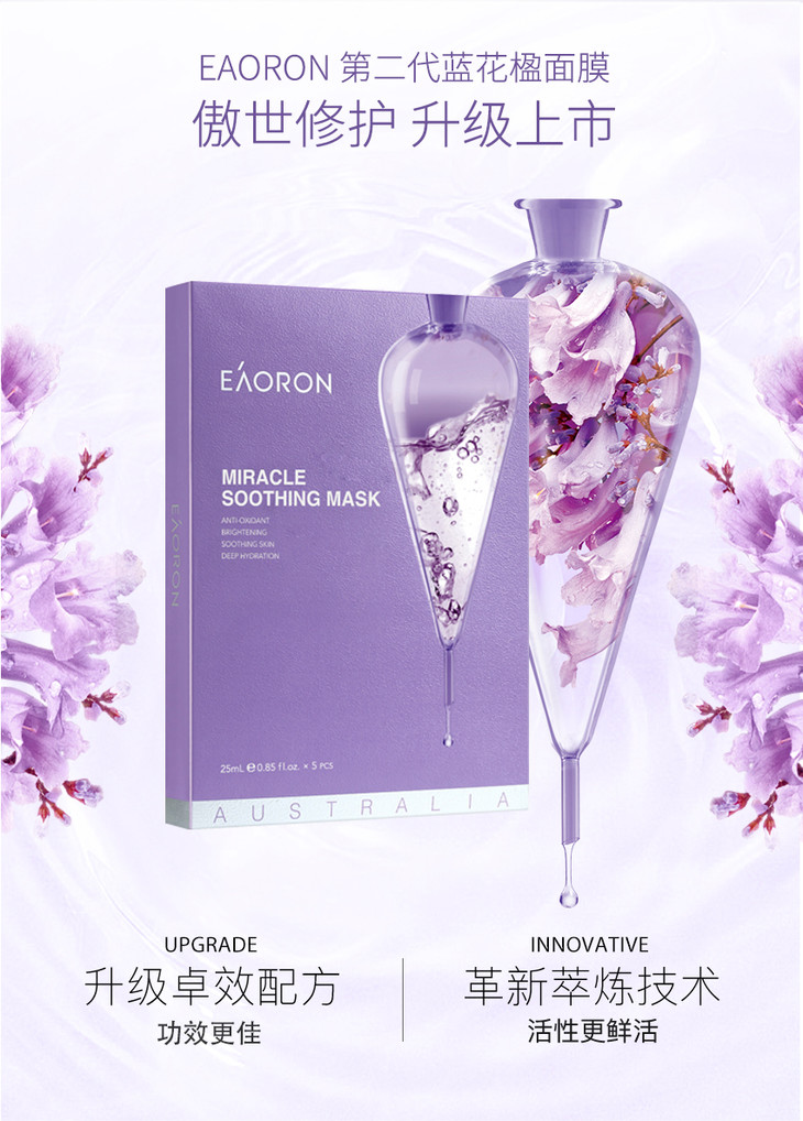 eaoron澳容 蓝花楹奇迹面膜 舒缓维稳 5片【不足200元订单,默认顺丰快递到付】