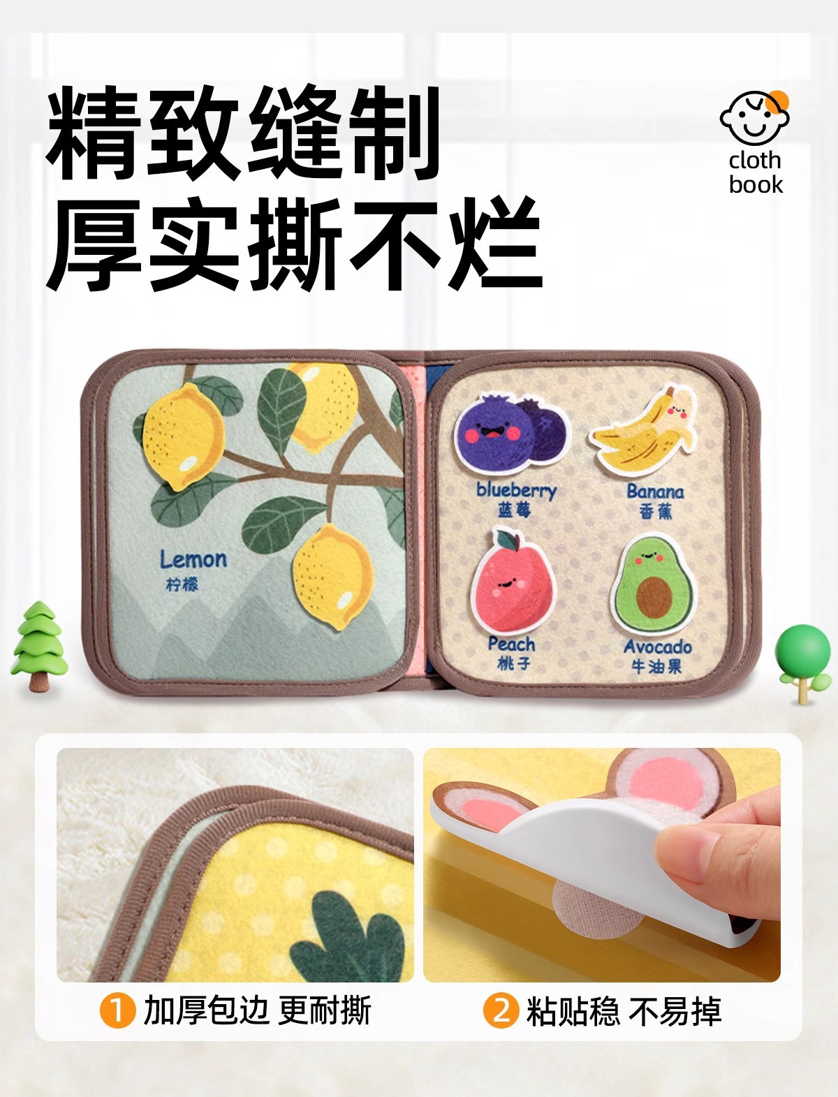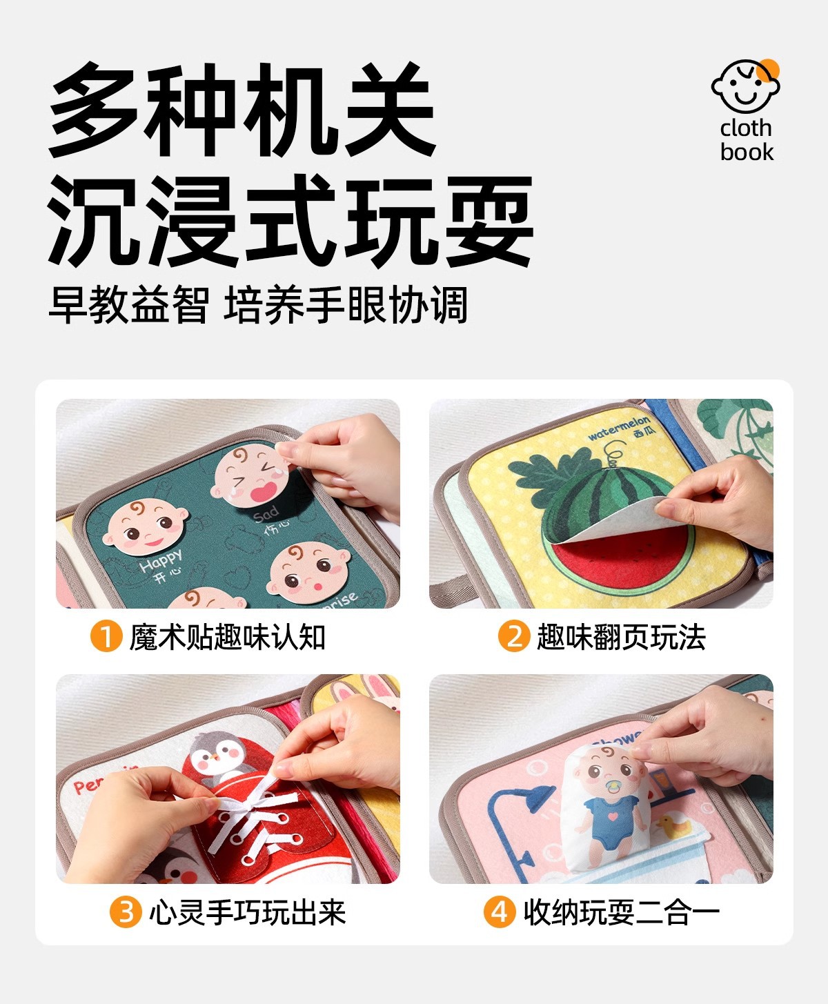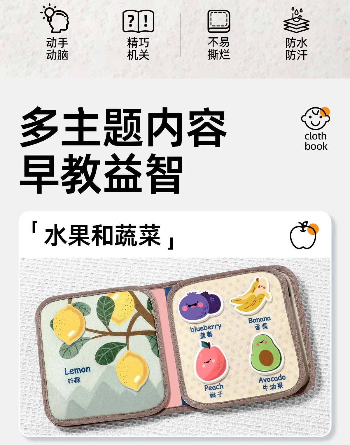 撕撕书婴儿撕不烂可啃咬宝宝布书魔术贴安静手撕书早教玩具可水洗