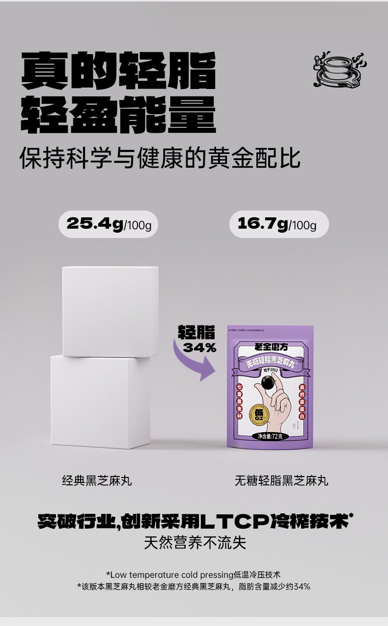老金磨方 无糖轻脂黑芝麻丸72g0糖低脂肪芝麻丸滋养食补 72g/包 多规格