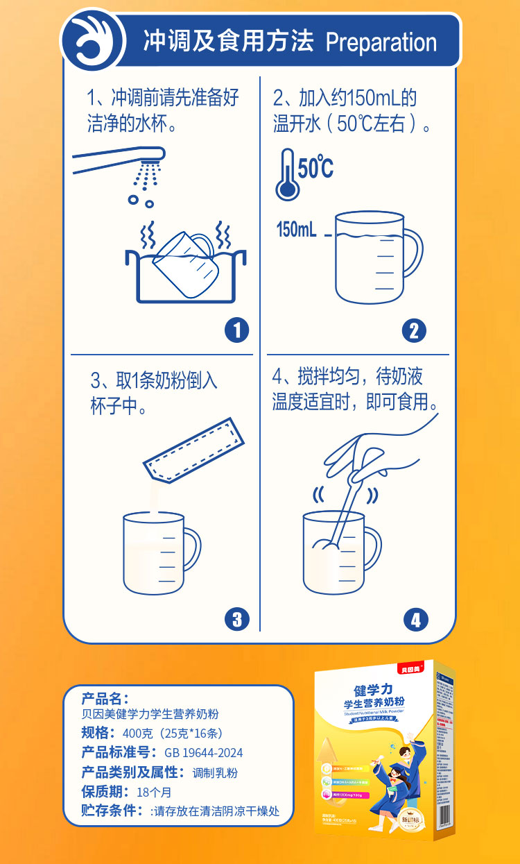 贝因美菁爱健学力儿童奶粉4段学生营养牛奶粉400g盒装便携牛奶粉