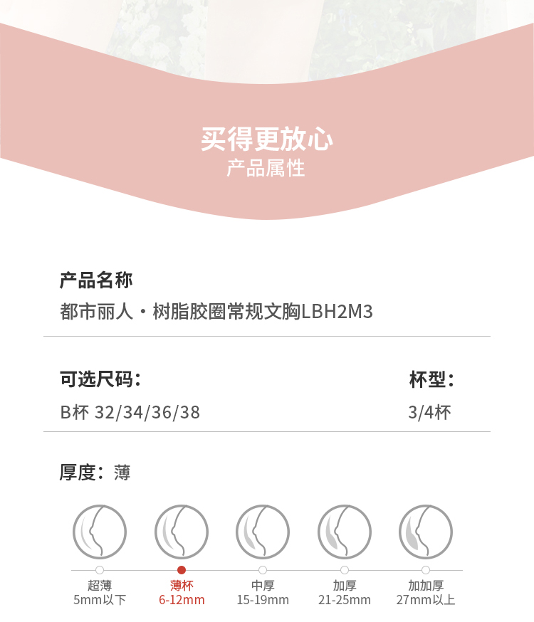 都市丽人AB杯内衣棉感锁边A:中厚B:薄3/4杯文胸三排扣树脂胶圈LB21A1