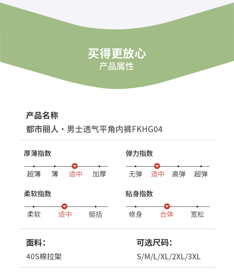 都市丽人棉平角40S棉拉架日常休闲平角裤FKHG04