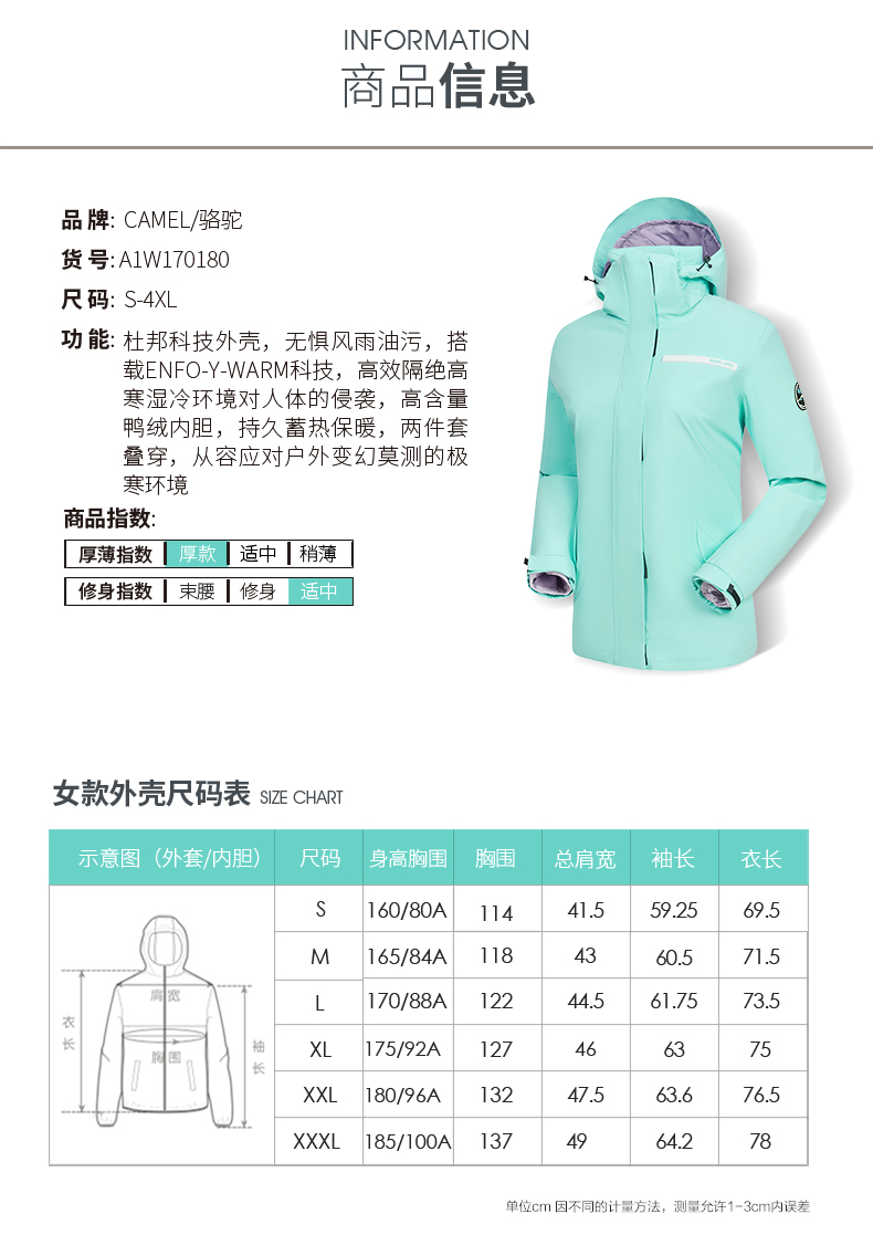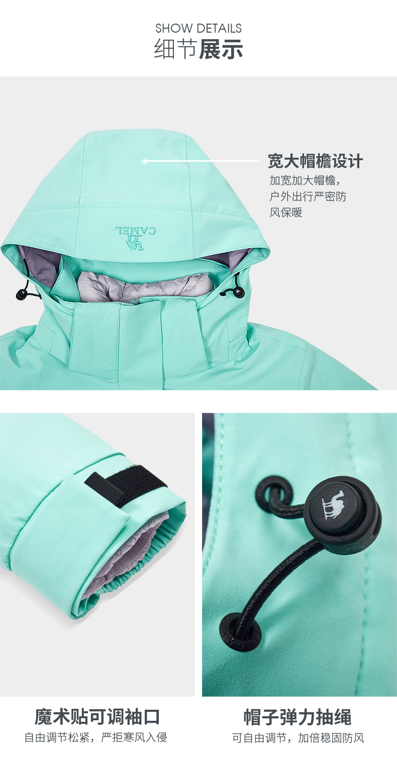明星同款骆驼珠穆朗玛极寒系列冲锋衣男女款羽绒服内胆三合一 A1W170180_A1W270181_A1W270181-1