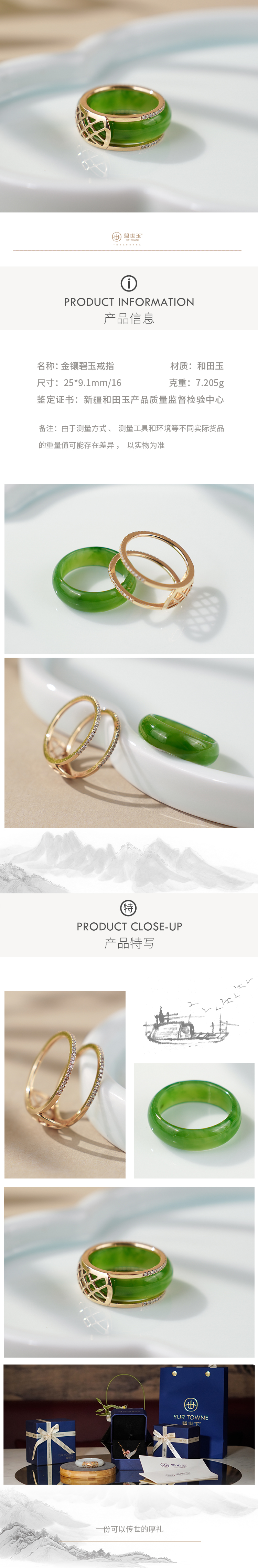 新疆国玉盟世玉金镶碧玉戒指·一戒四戴圈口16#【带证书·顺丰物流】