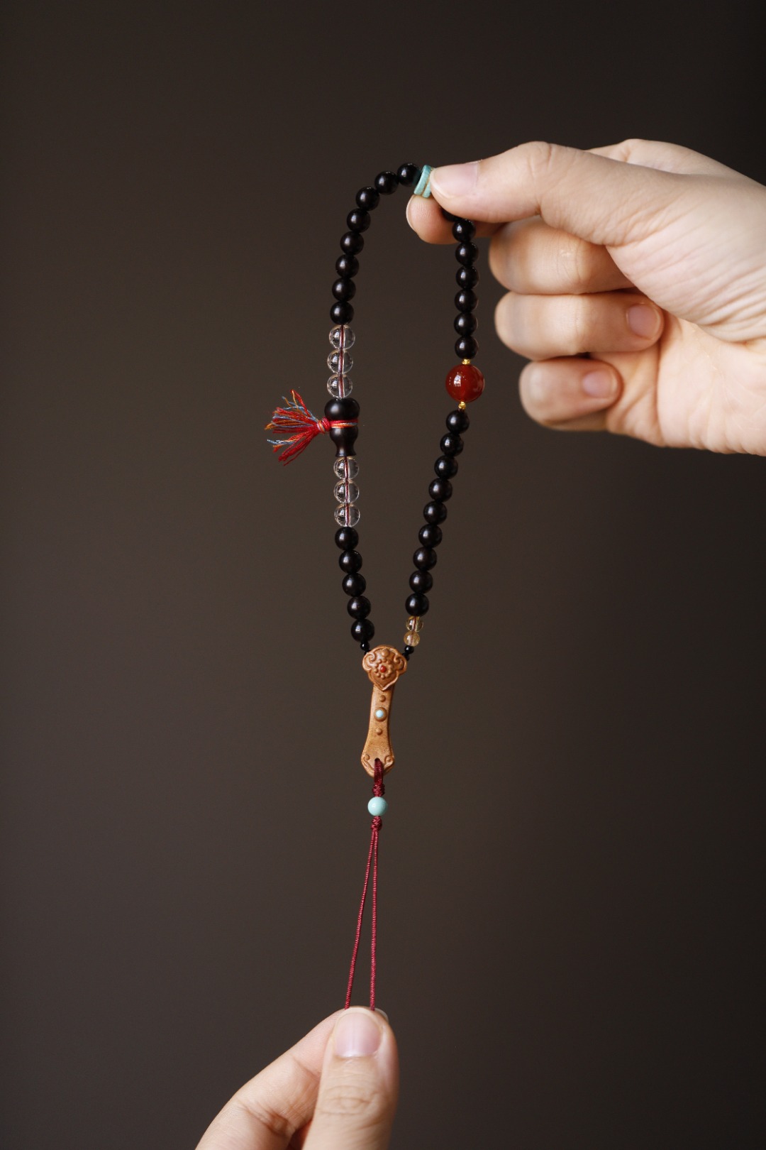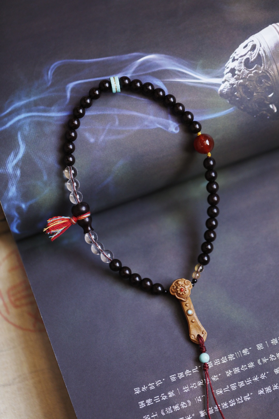 配饰:松石、红玛瑙、黑玛瑙、黄水晶、白水晶、老山檀香