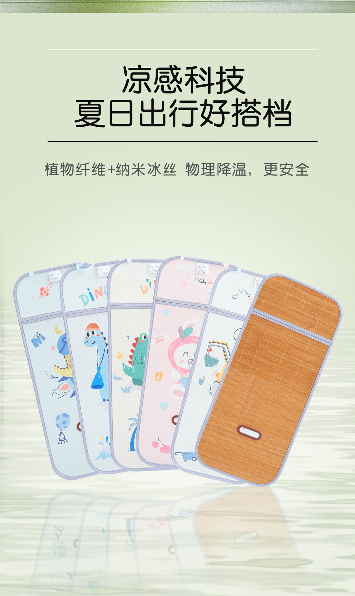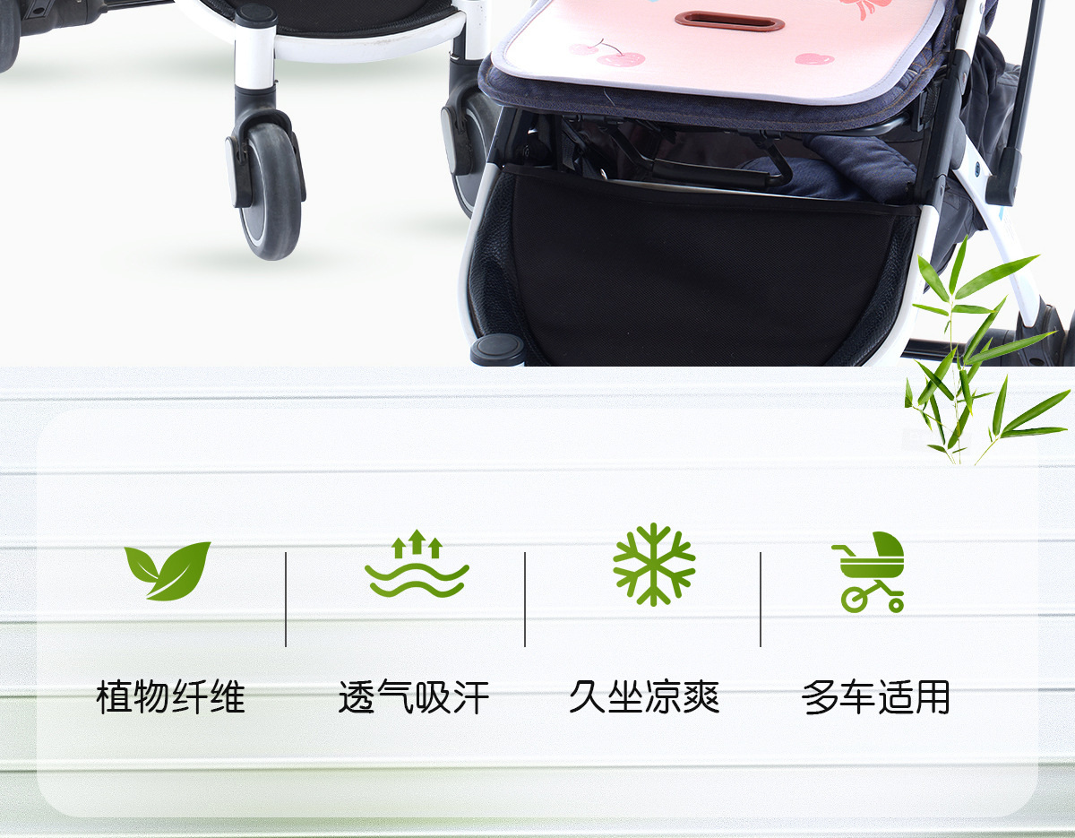 婴儿车凉席宝宝手推车竹席垫双面柔软凉靠垫夏季儿童卡通冰丝席