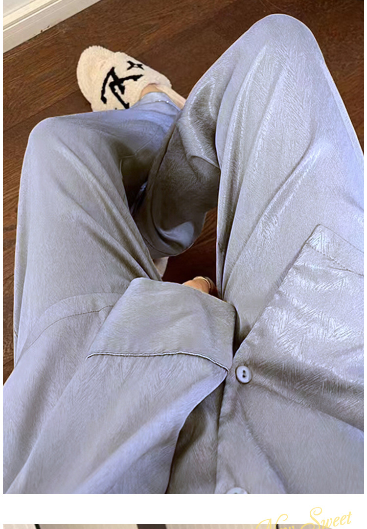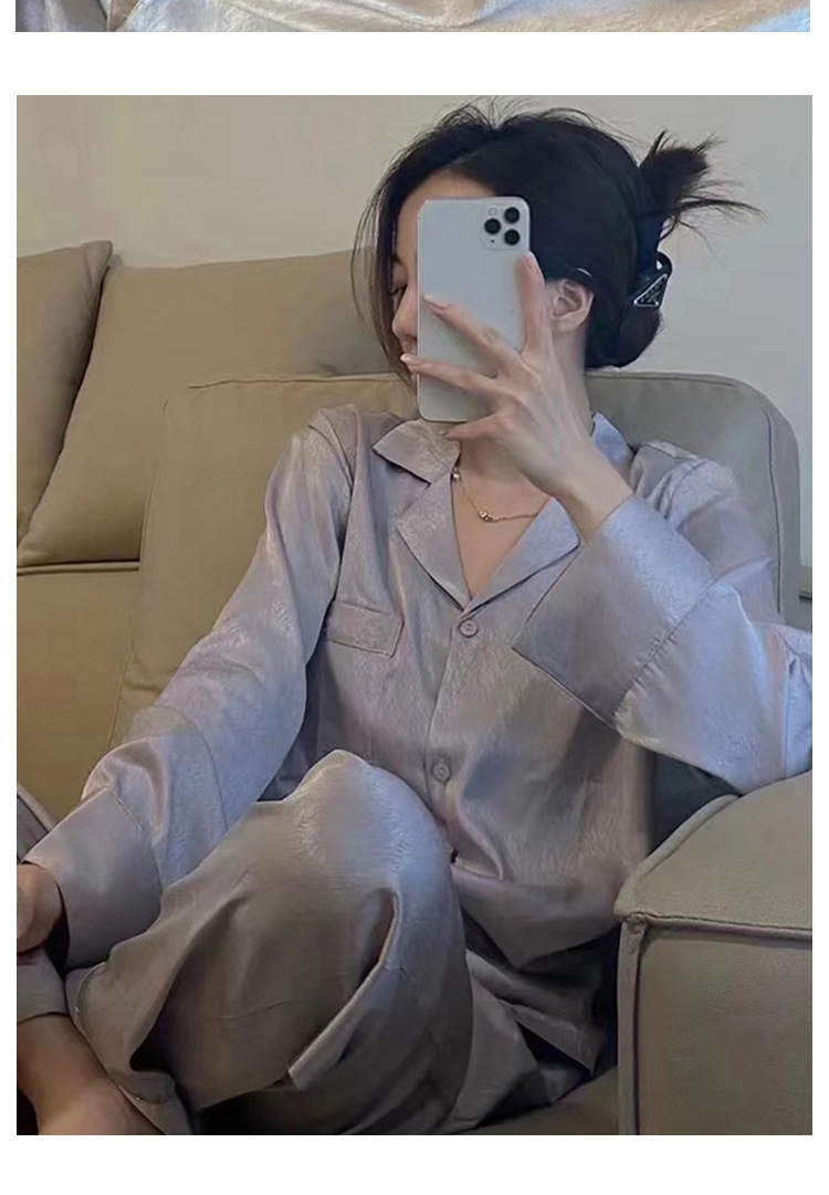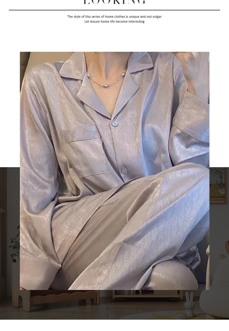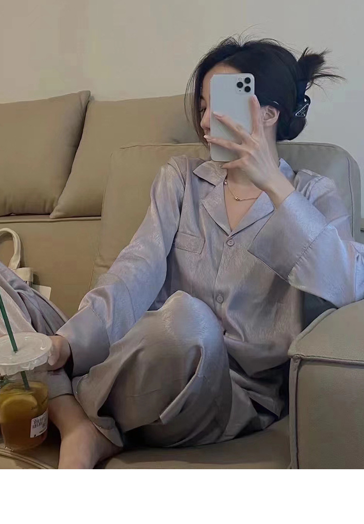 ns网红睡衣女春秋季纯色长袖爆款提花斜纹高端冰丝家居服