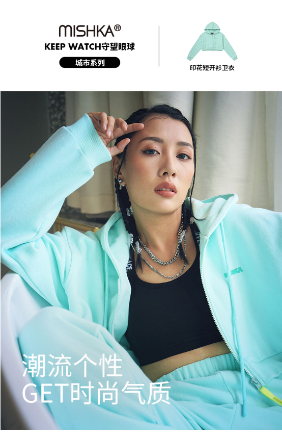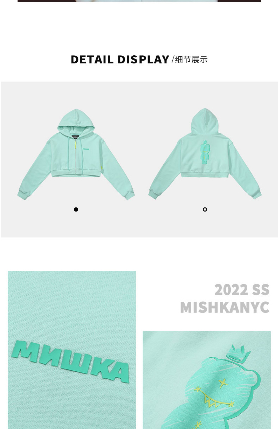 MISHKA短款拉链连帽卫衣M21100485W