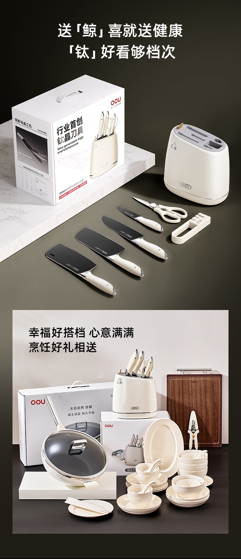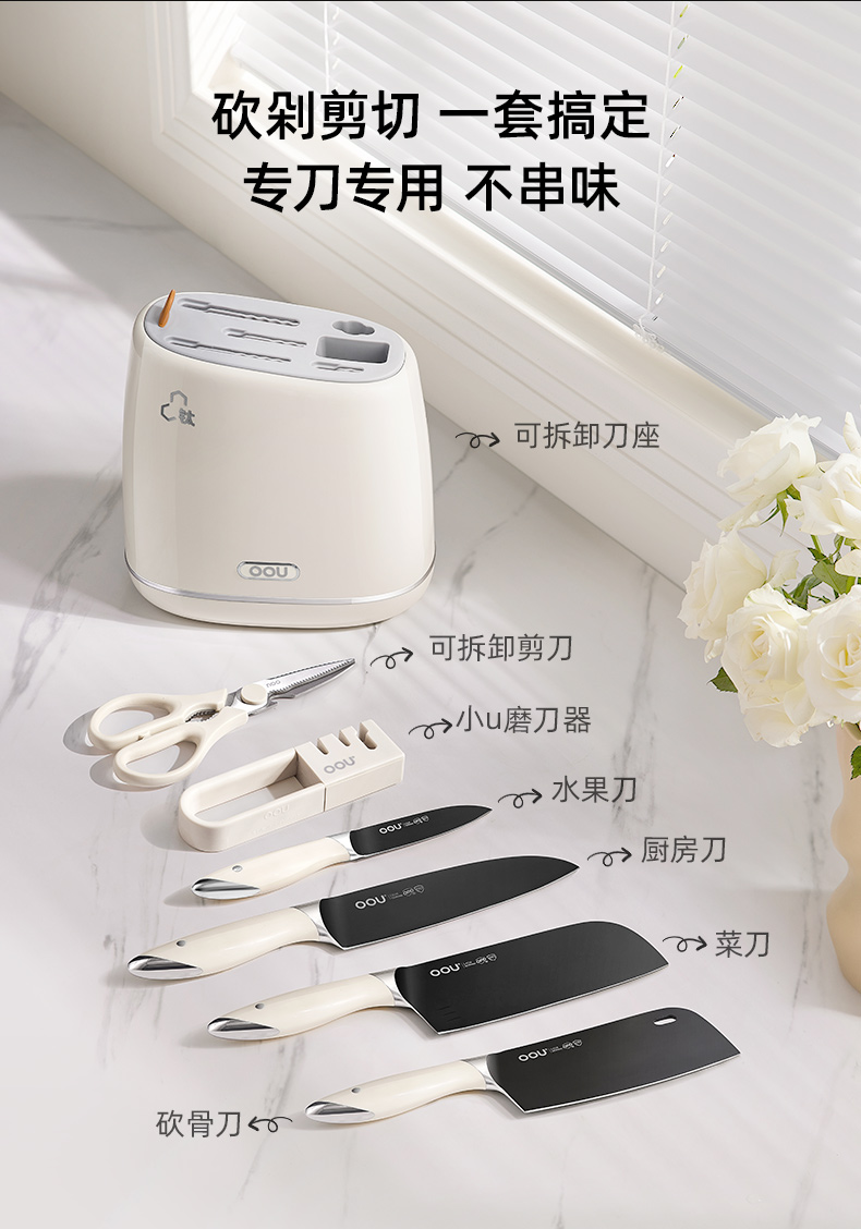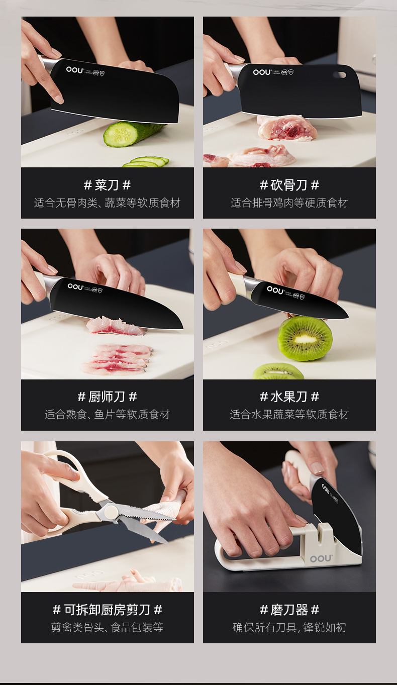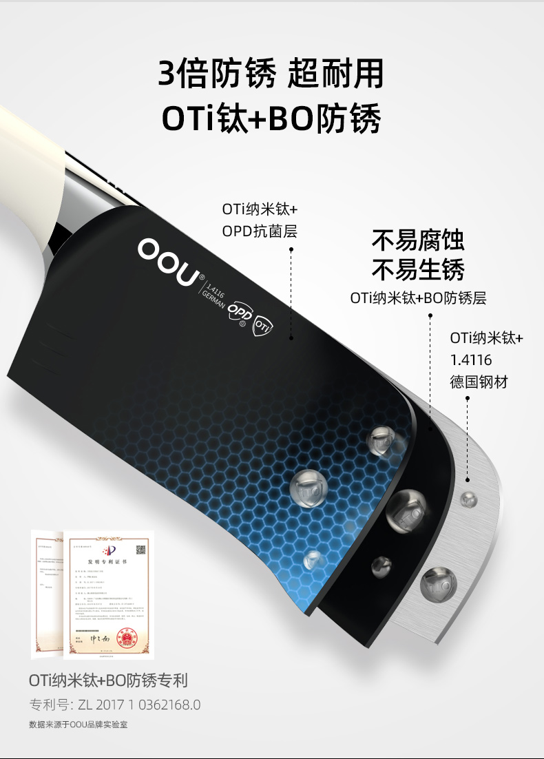 OOU钛晶刀具德国钢材不锈钢厨房套装组合菜刀