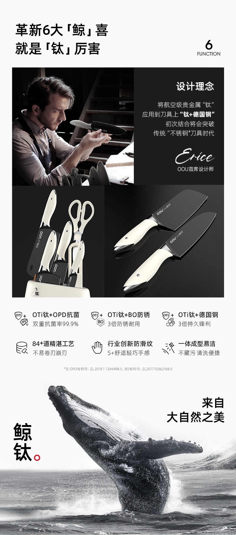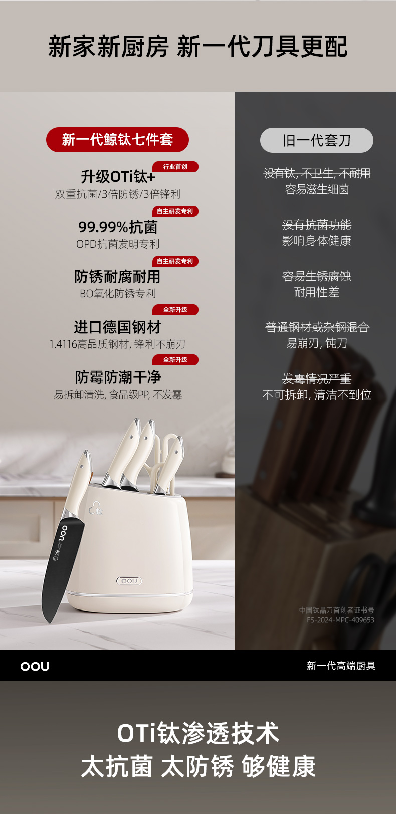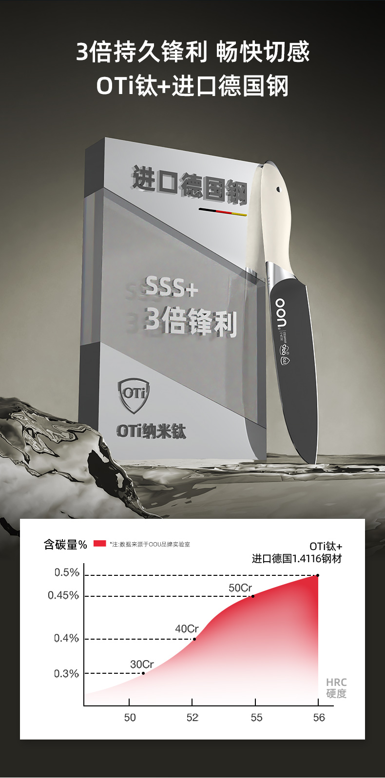 OOU钛晶刀具德国钢材不锈钢厨房套装组合菜刀
