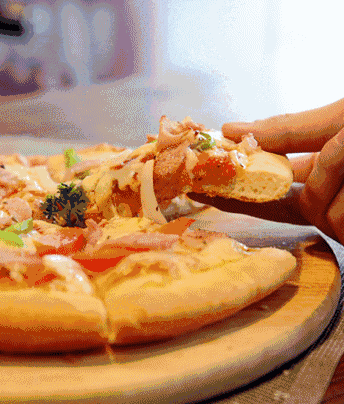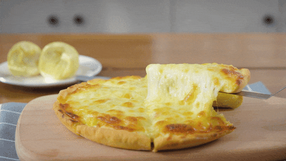 拿回家烤至金黄酥脆,慢慢拉出长长奶酪丝