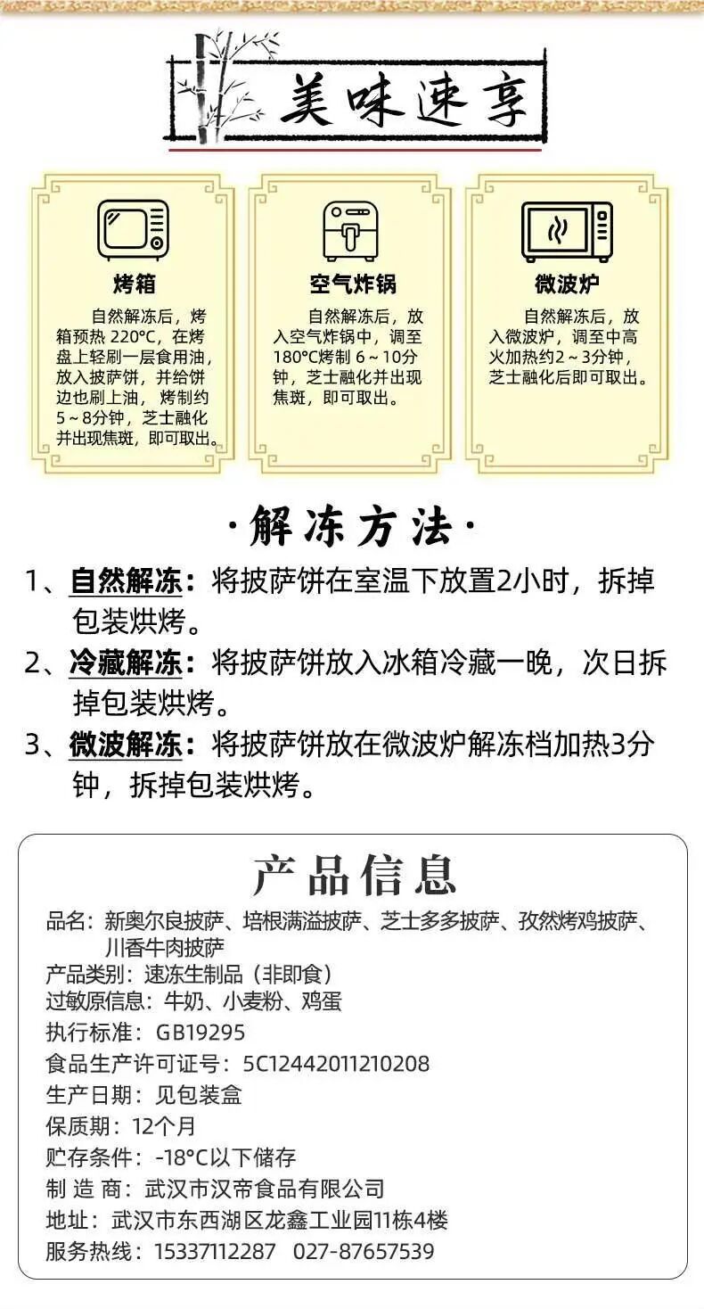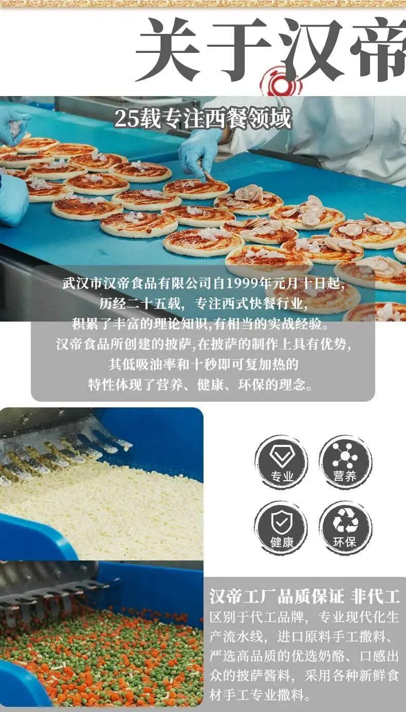 汉帝食品所创建的披萨,在披萨的制作上具有优势,其低吸油率和十秒即可复加热的特性体现了营养、健康环保的理念