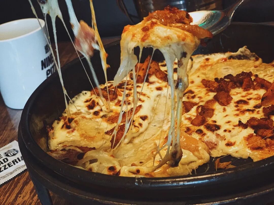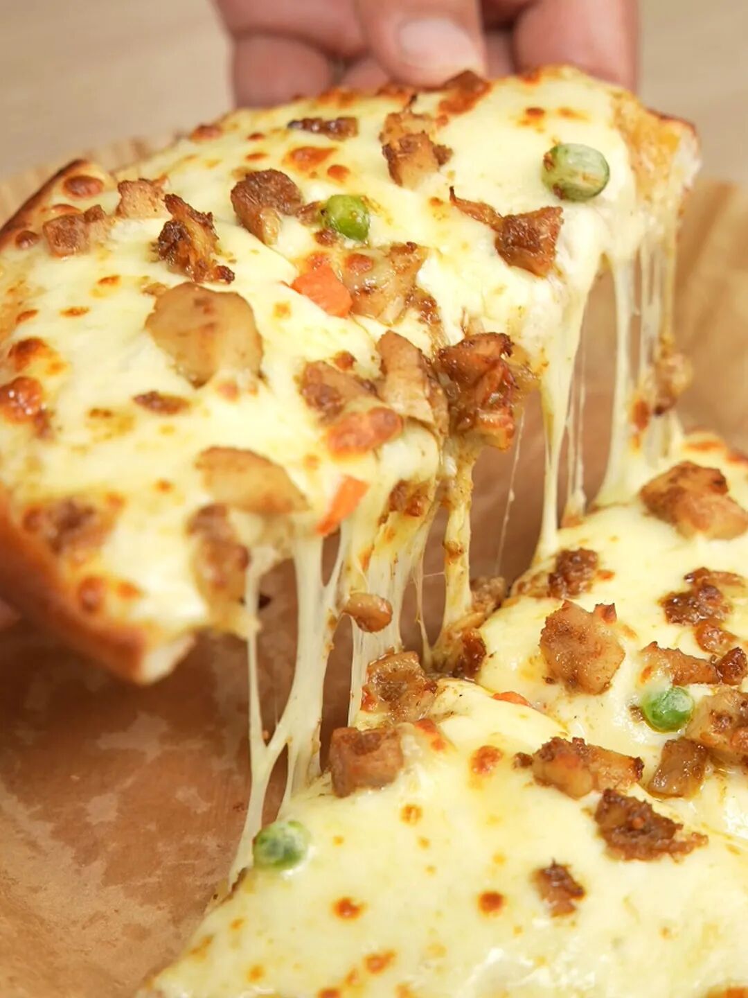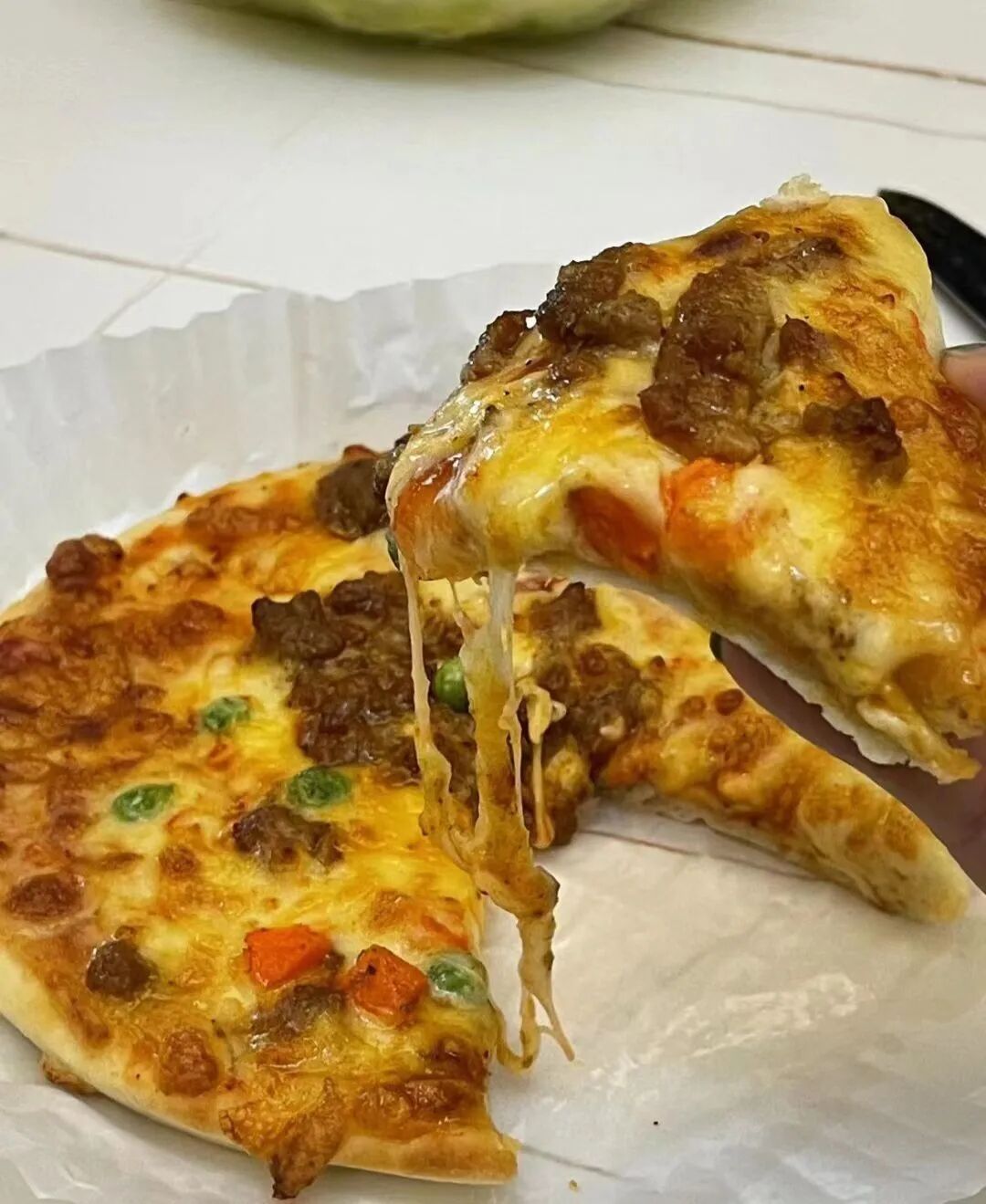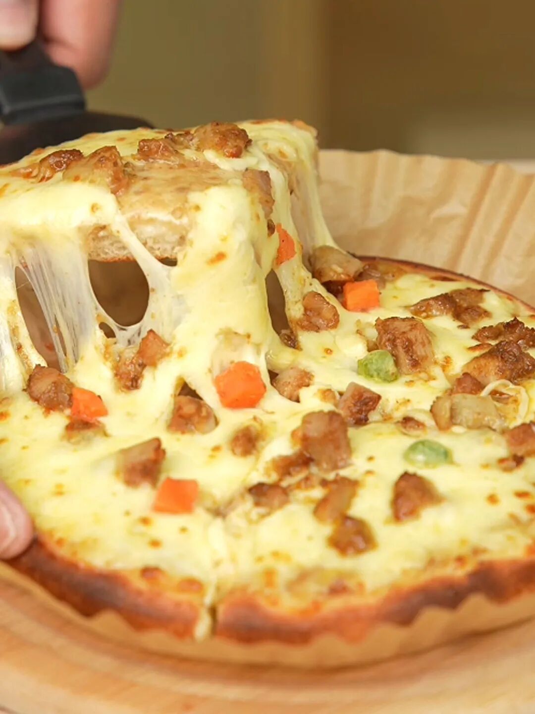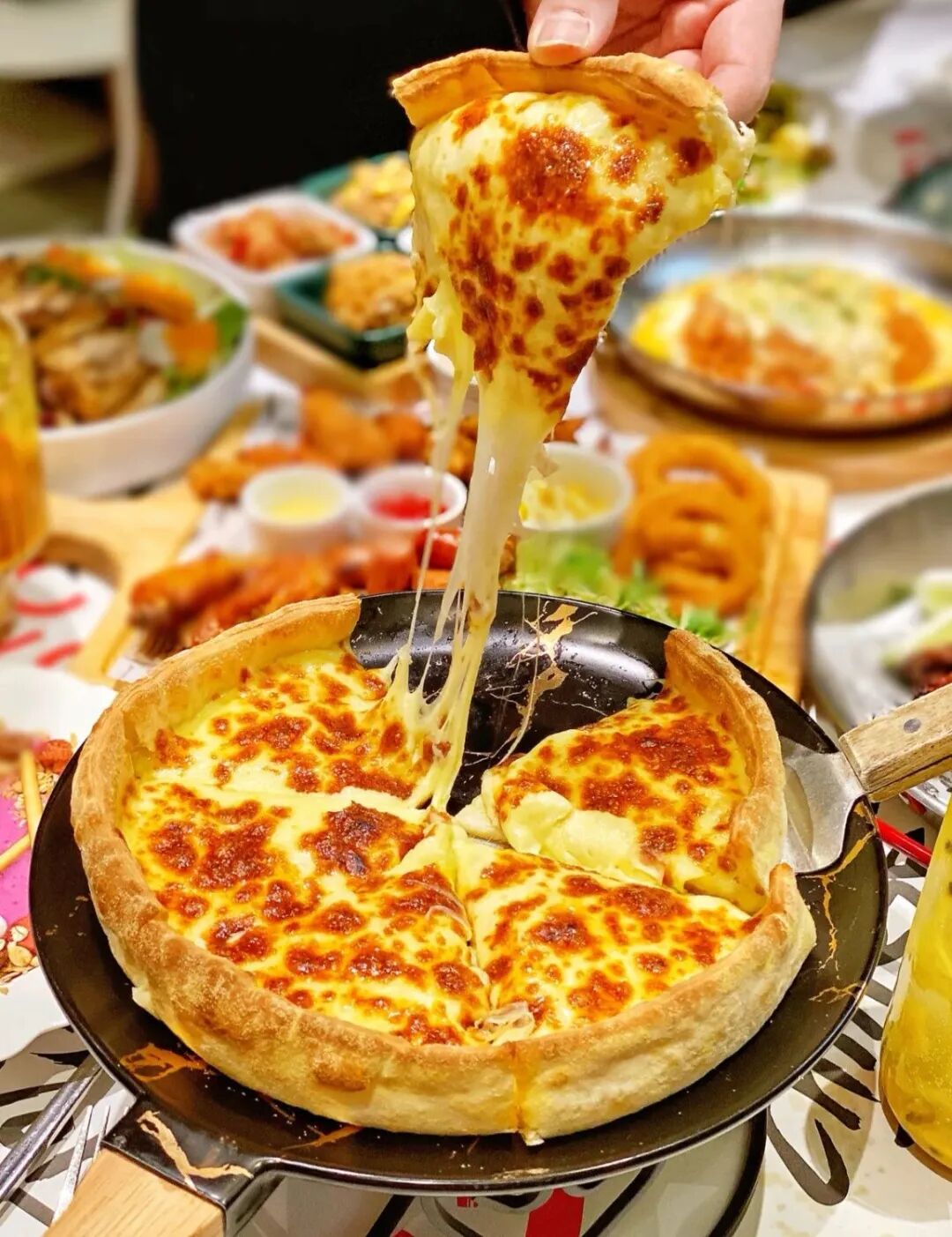 铺满的芝士,要溢出的馅料,软嫩的饼皮