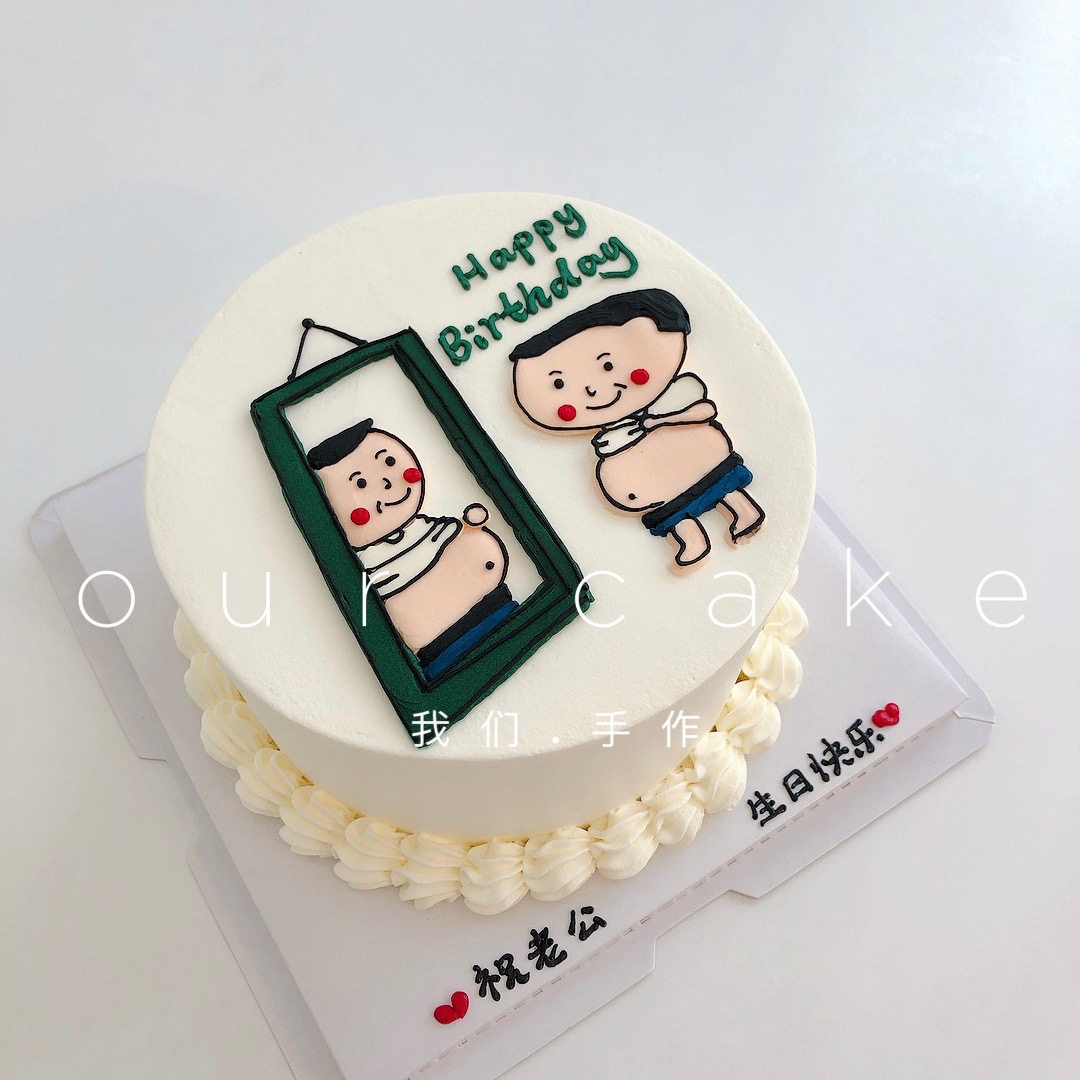照镜子/男生/送老公/朋友的手绘蛋糕/恶搞蛋糕-低糖处理无添加