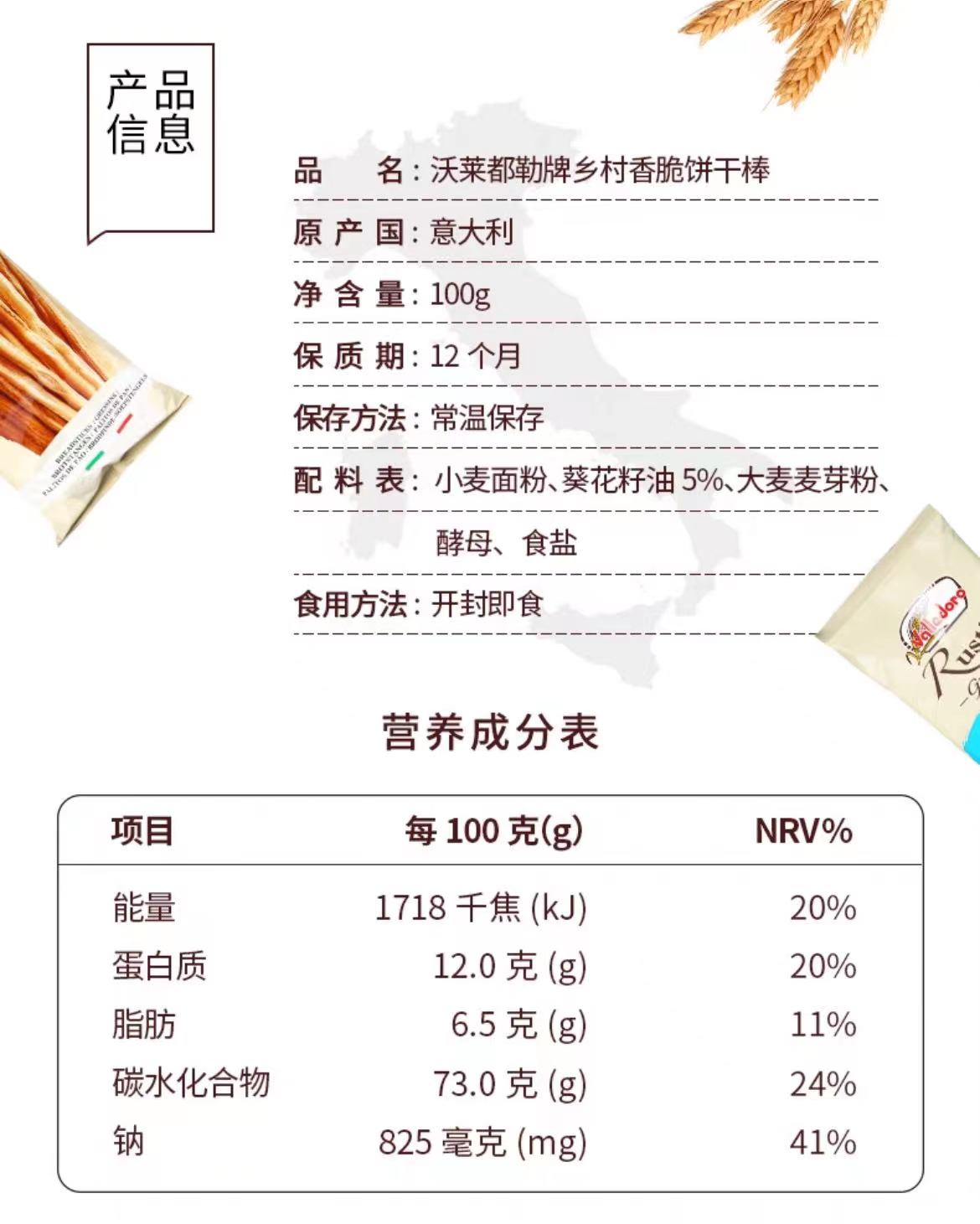 沃莱都勒牌乡村香脆饼干棒 Valledororustici grissini