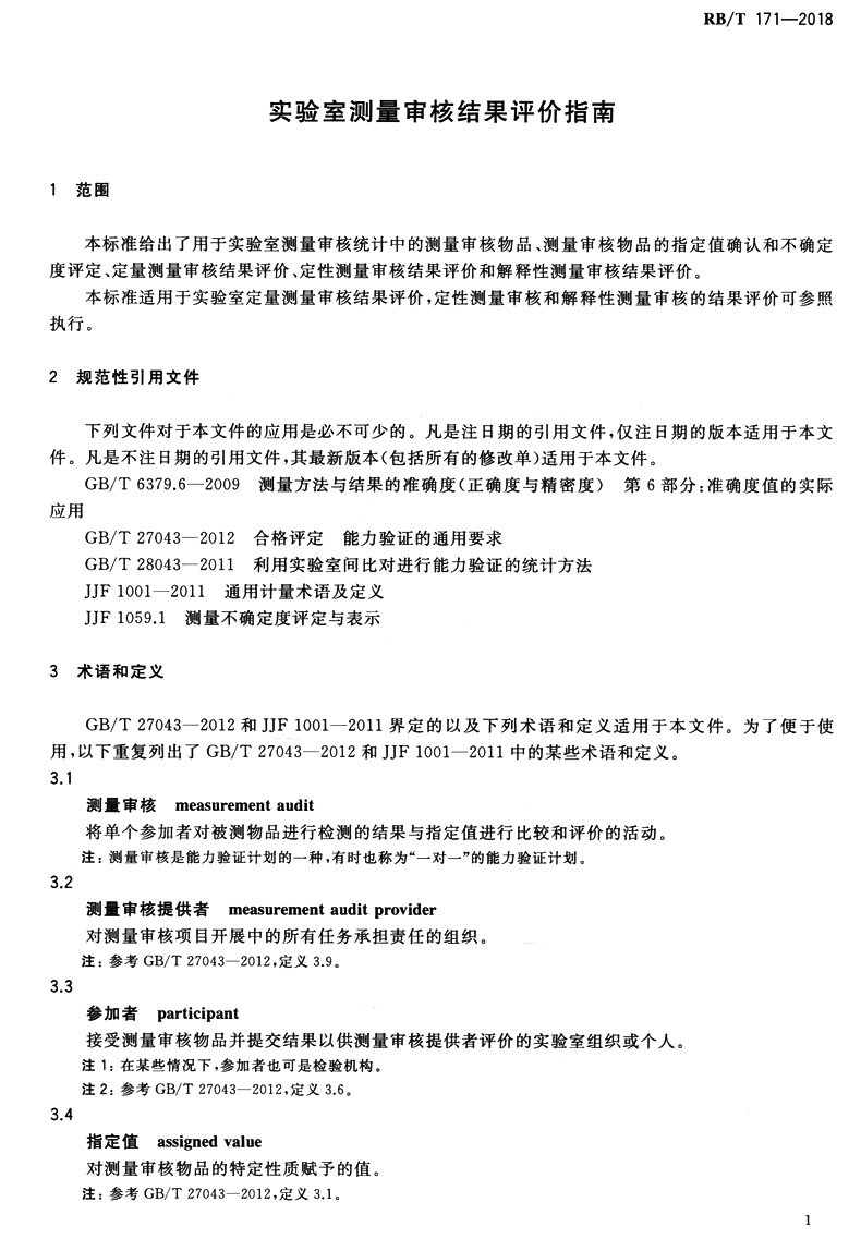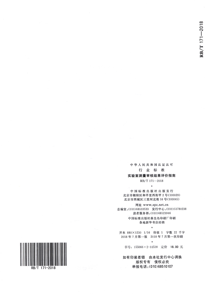 书名:速印不退 RB/T 171-2018实验室测量审核结果评价指南