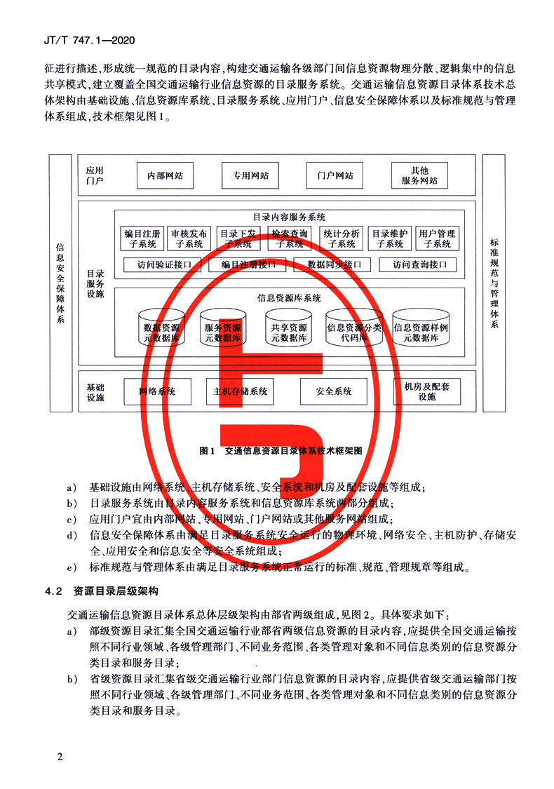 | 交通运输信息资源目录体系 第1部分:总体框架(JT/T 747.1—2020) | ||