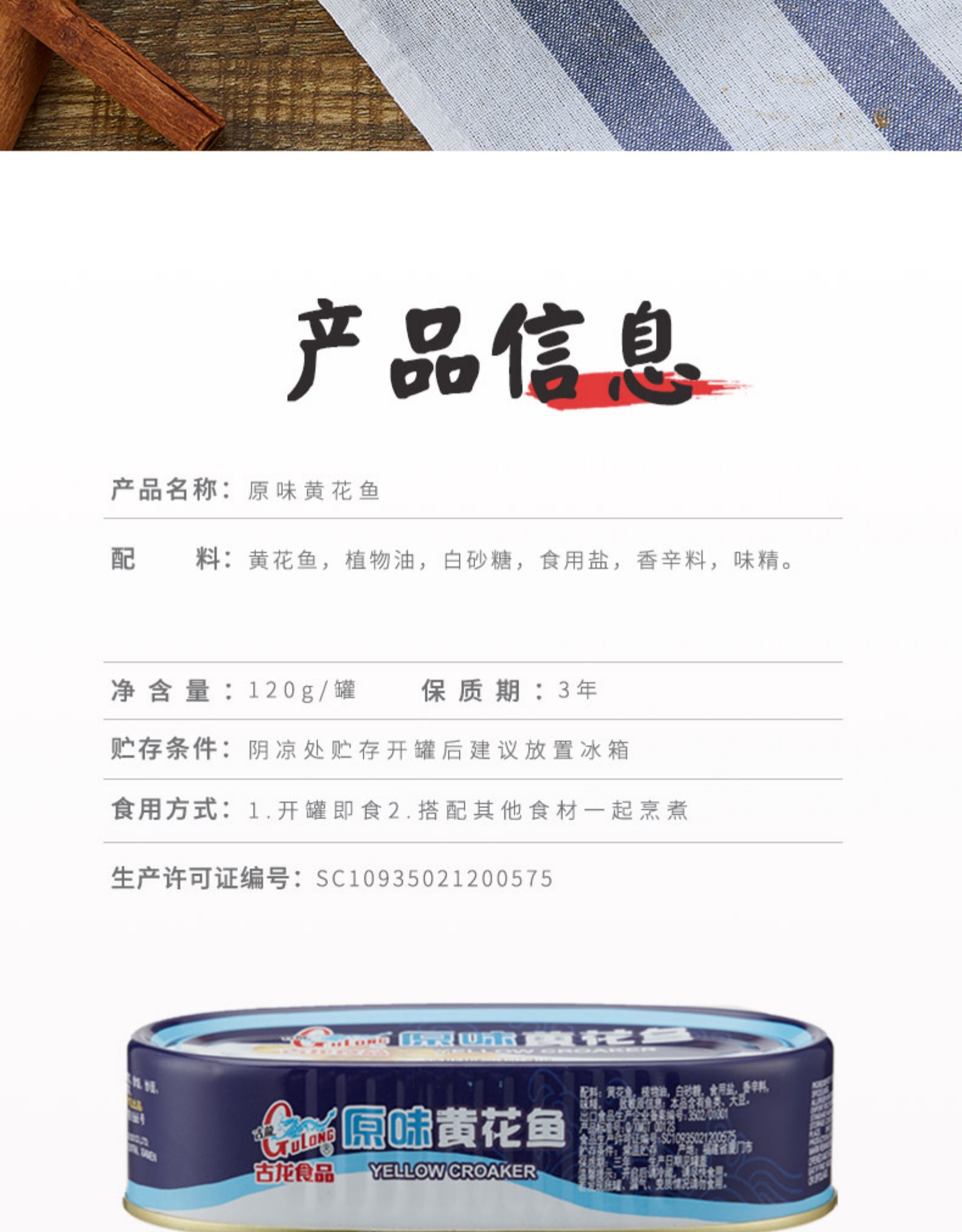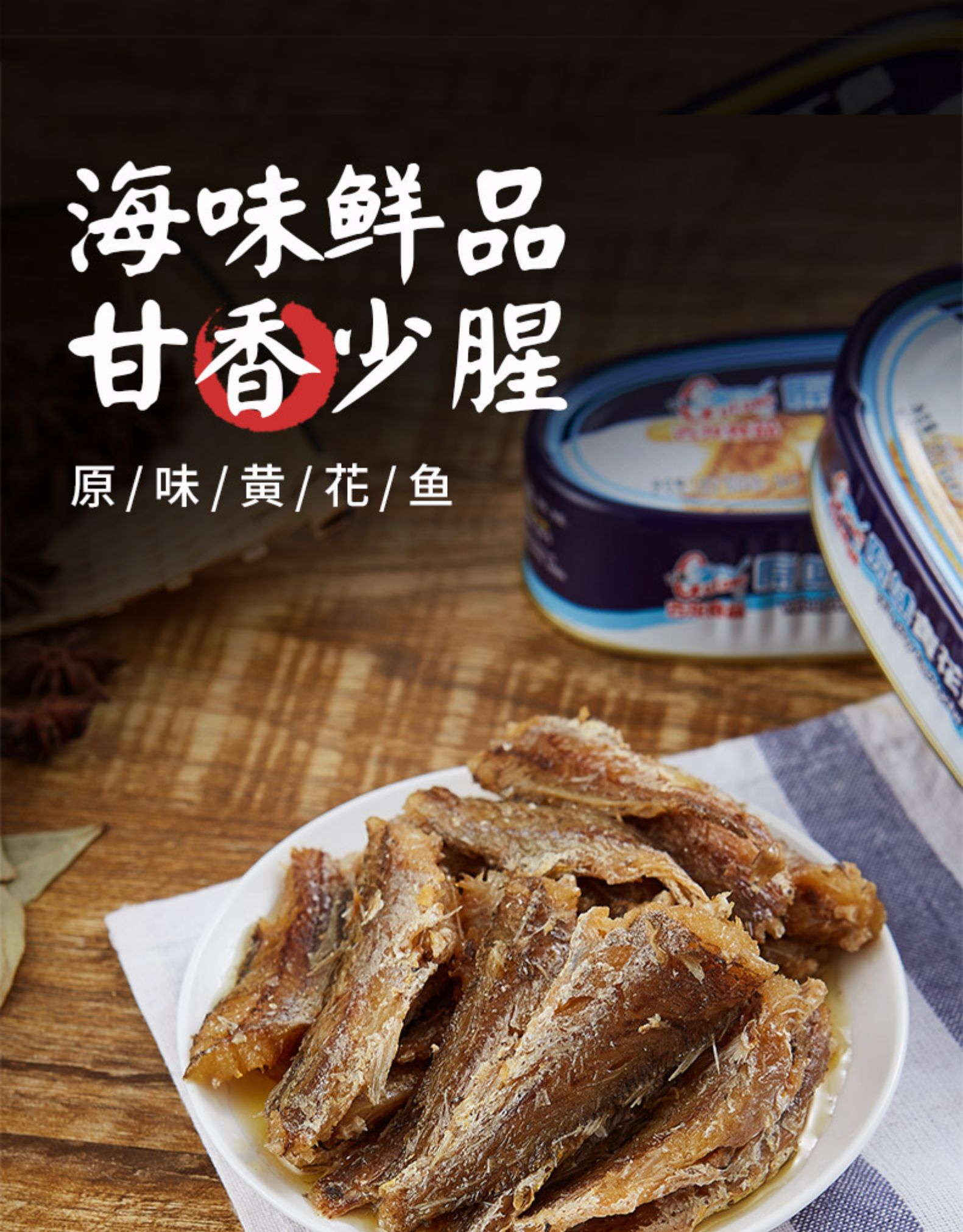 古龙食品原味黄花鱼罐头特产小吃海鲜海味即食下酒熟食凉菜