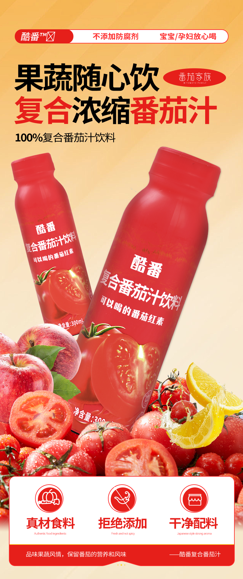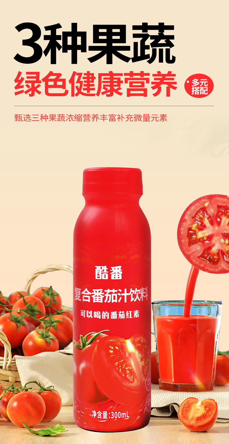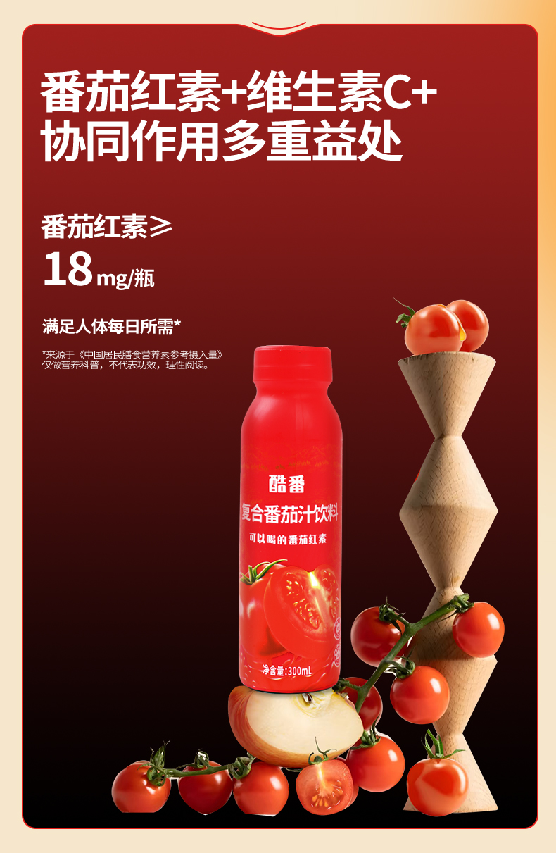 【自营】酷番 复合型番茄果蔬汁 300g*6瓶
