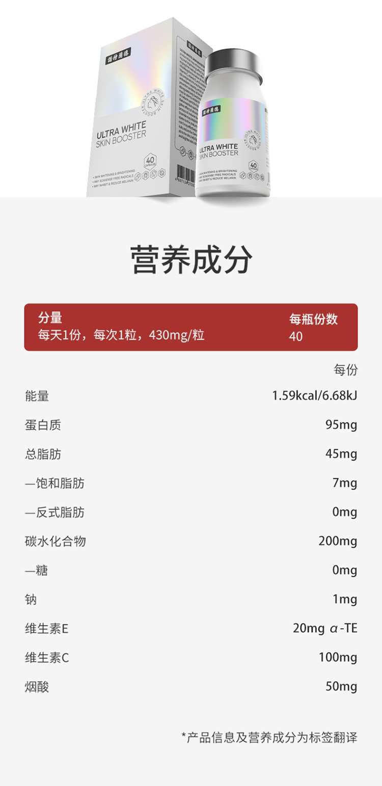 严选 | 诺特兰德光白瓶胶囊 40粒/瓶 科学复配6大营养