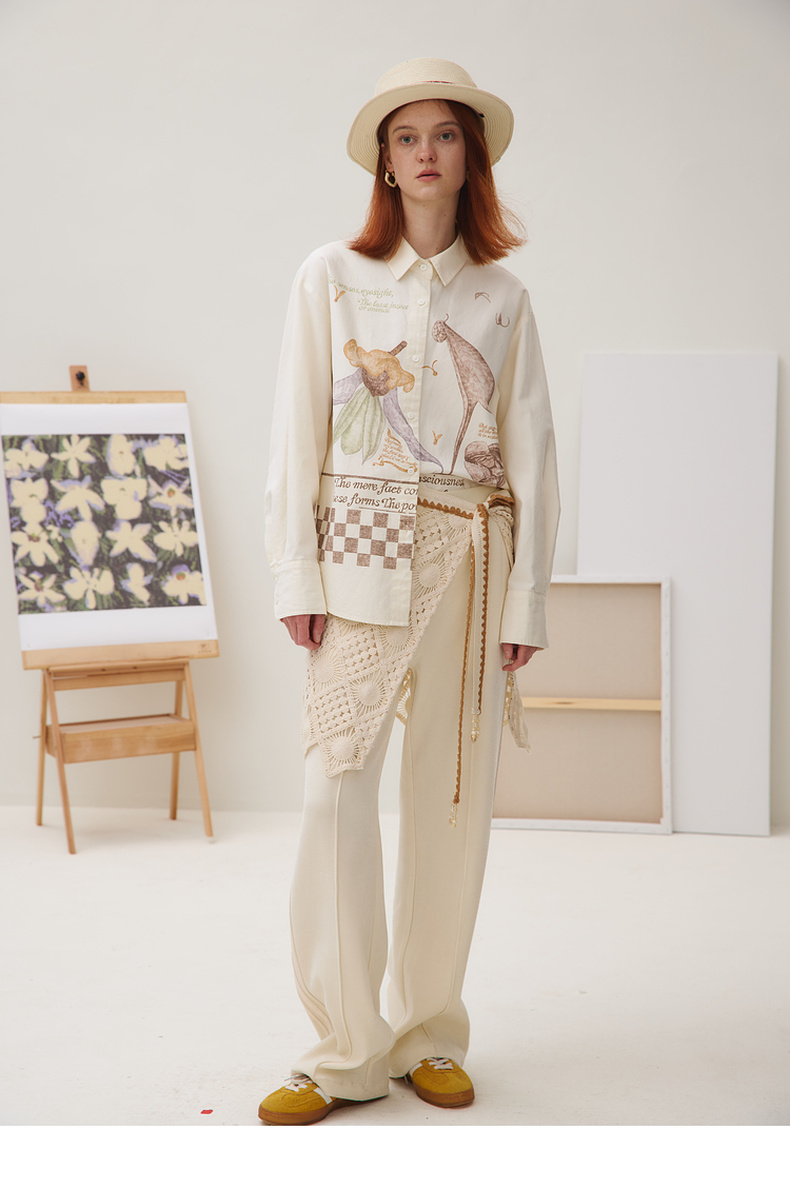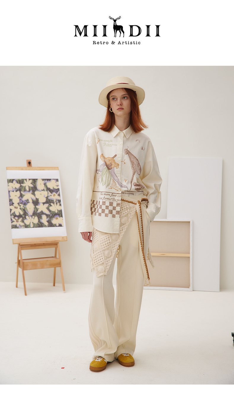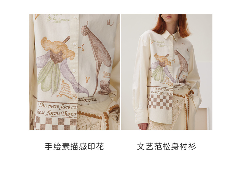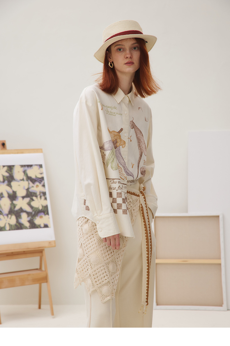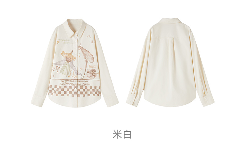 谜底衬衣长袖女2025秋季新品复古通勤复古手绘印花衬衫253MC1267