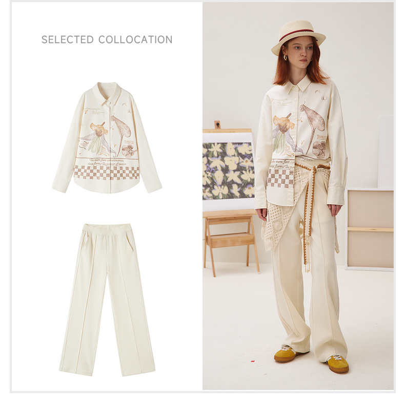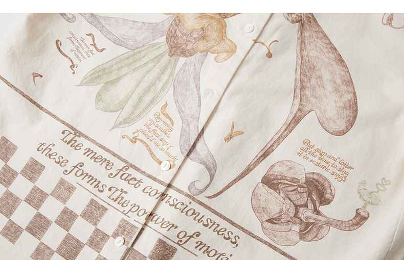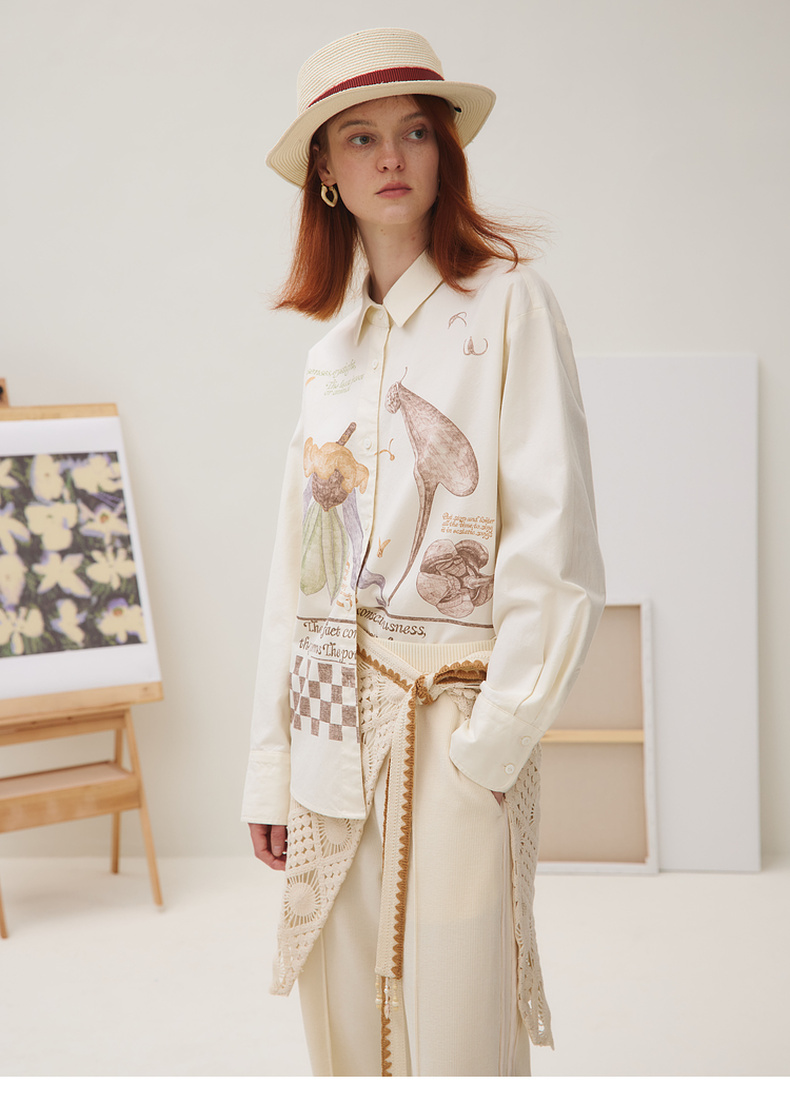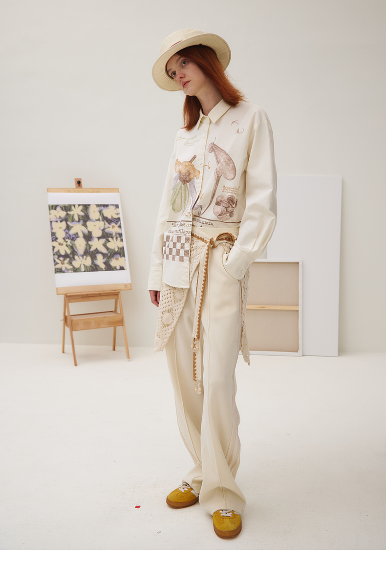 谜底衬衣长袖女2025秋季新品复古通勤复古手绘印花衬衫253MC1267