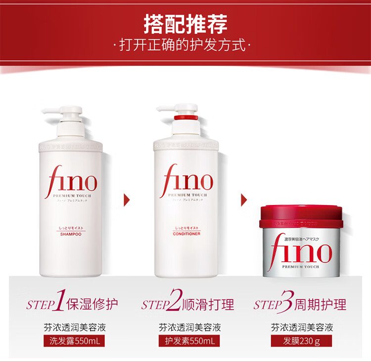 FINO芬浓 透润美容液护发素修护受损发质发膜级强韧柔顺 550ml/瓶