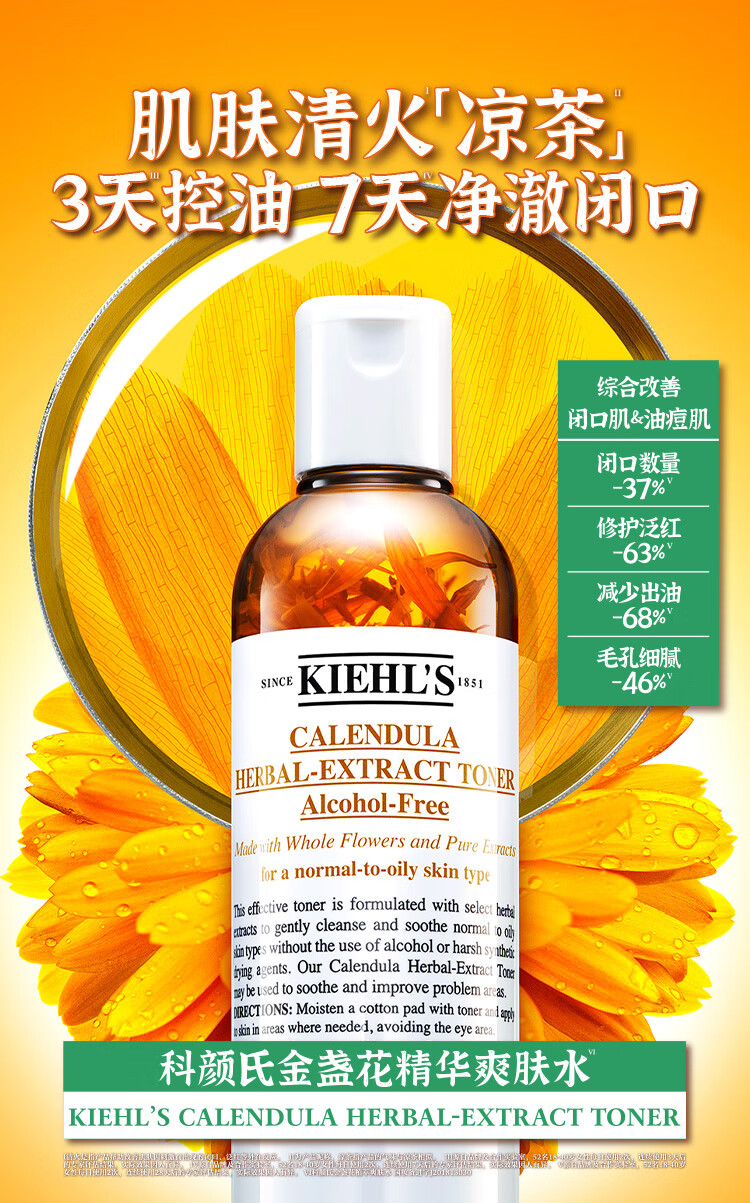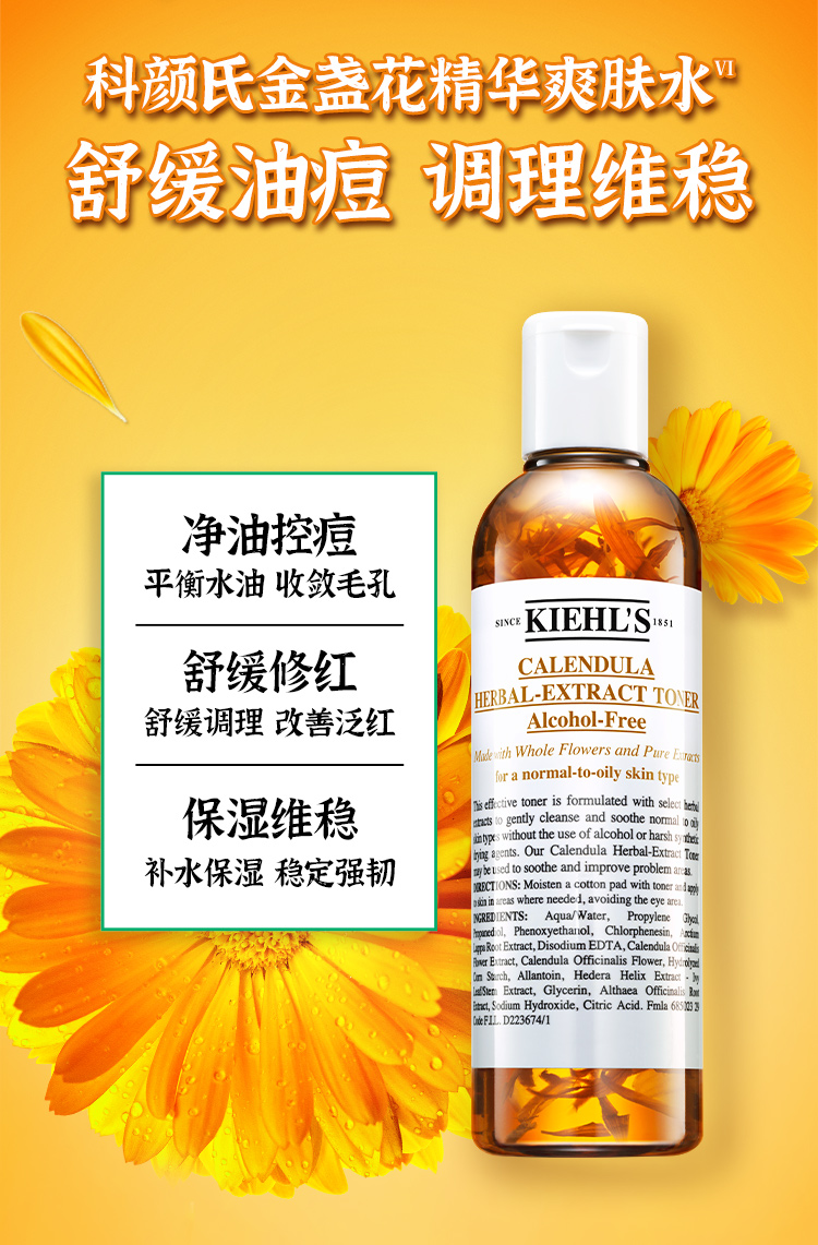 【精选包邮】正品科颜氏(Kiehl's)金盏花爽肤水250ml 收缩毛孔补水保湿 心选到家