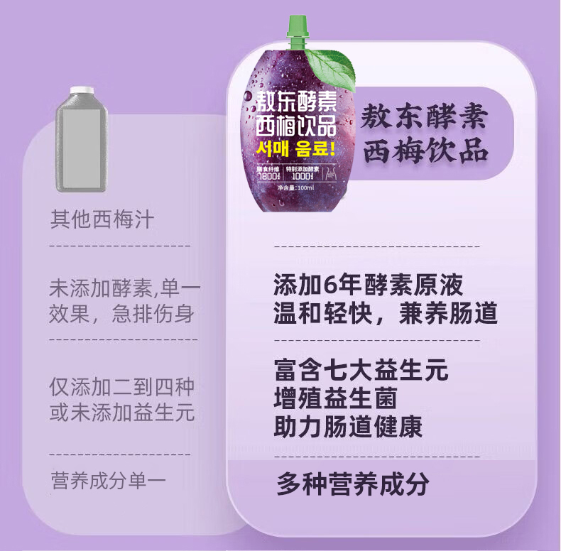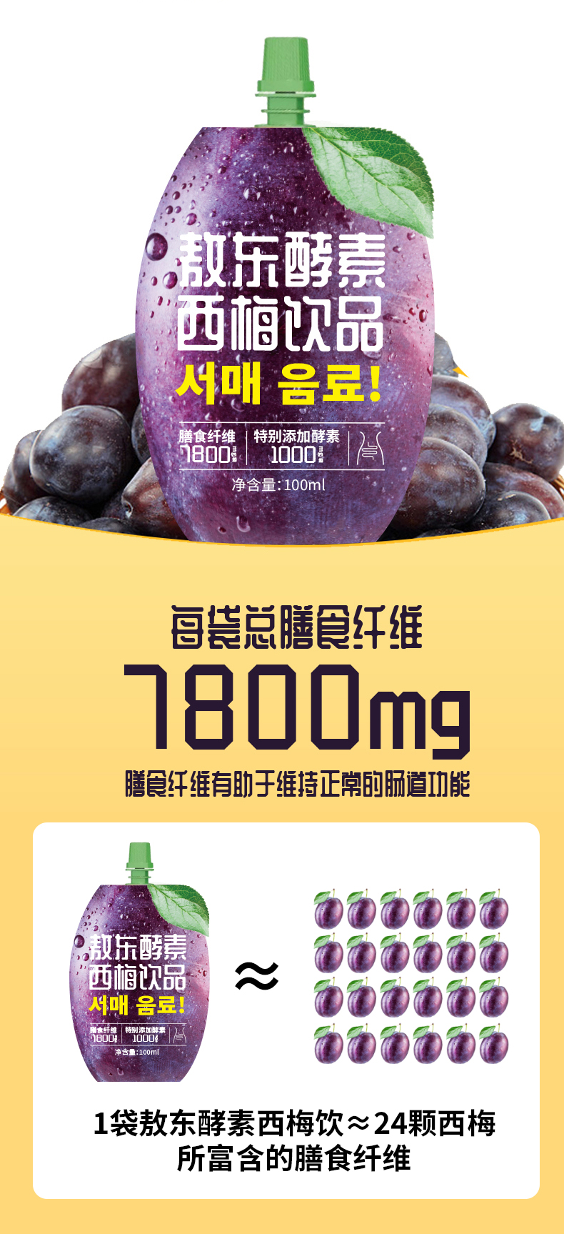 【买2立减20】敖东酵素西梅饮品 专利酵素原液+西梅汁+6大益生元 1袋≈24颗智利西梅 大餐救星 便携装