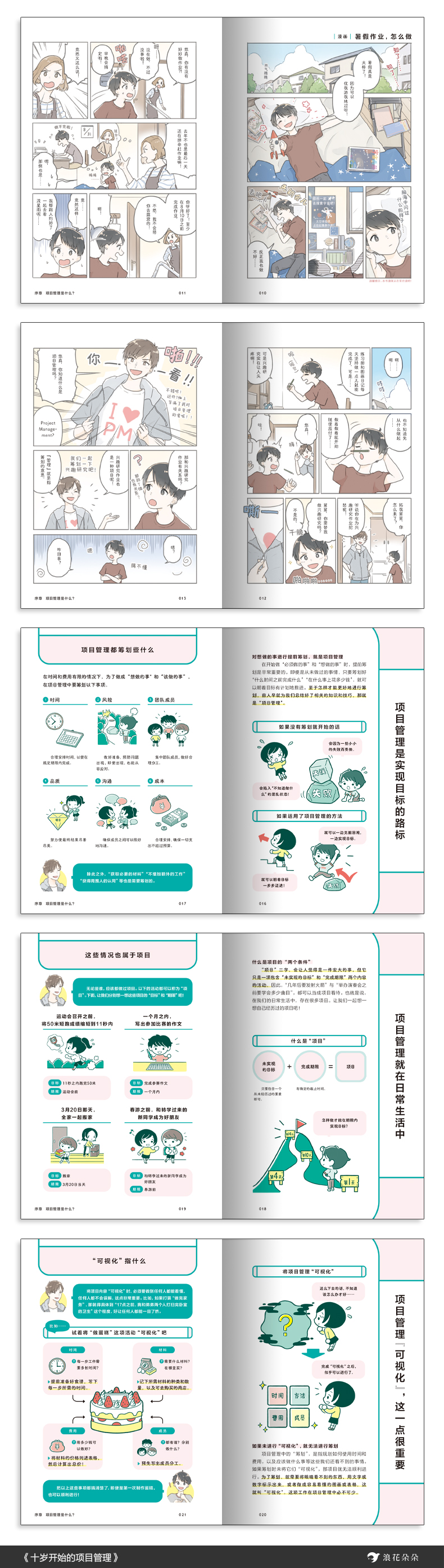 给小朋友的项目管理入门。本书将项目管理的基础知识和具体方法,通过漫画加图解的形式,融入到了和小朋友的日常生活密切相关的四大事项中(完成暑假作业、给妈妈准备生日、组织社团报告会、筹办校园联欢活动),小朋友将通过明确目标、制订计划、执行计划、锻炼领导力等一系列的项目管理实践式学习,拥有实现人生梦想和目标所需要的超能力。