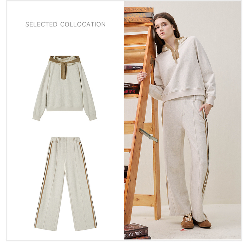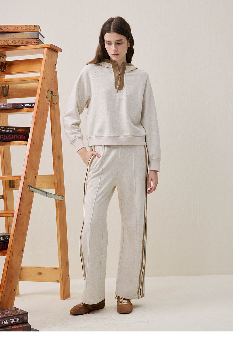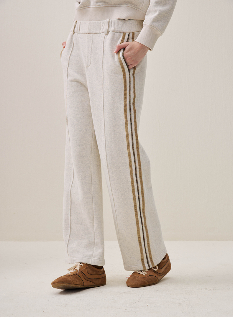 谜底直筒裤长裤2025冬季新品运动风松紧腰拼接休闲裤女254MK1649