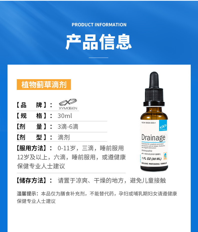 【效期至26年7月】植物蓟草滴剂 XYMOGEN Drainage 1 oz 30ml/瓶
