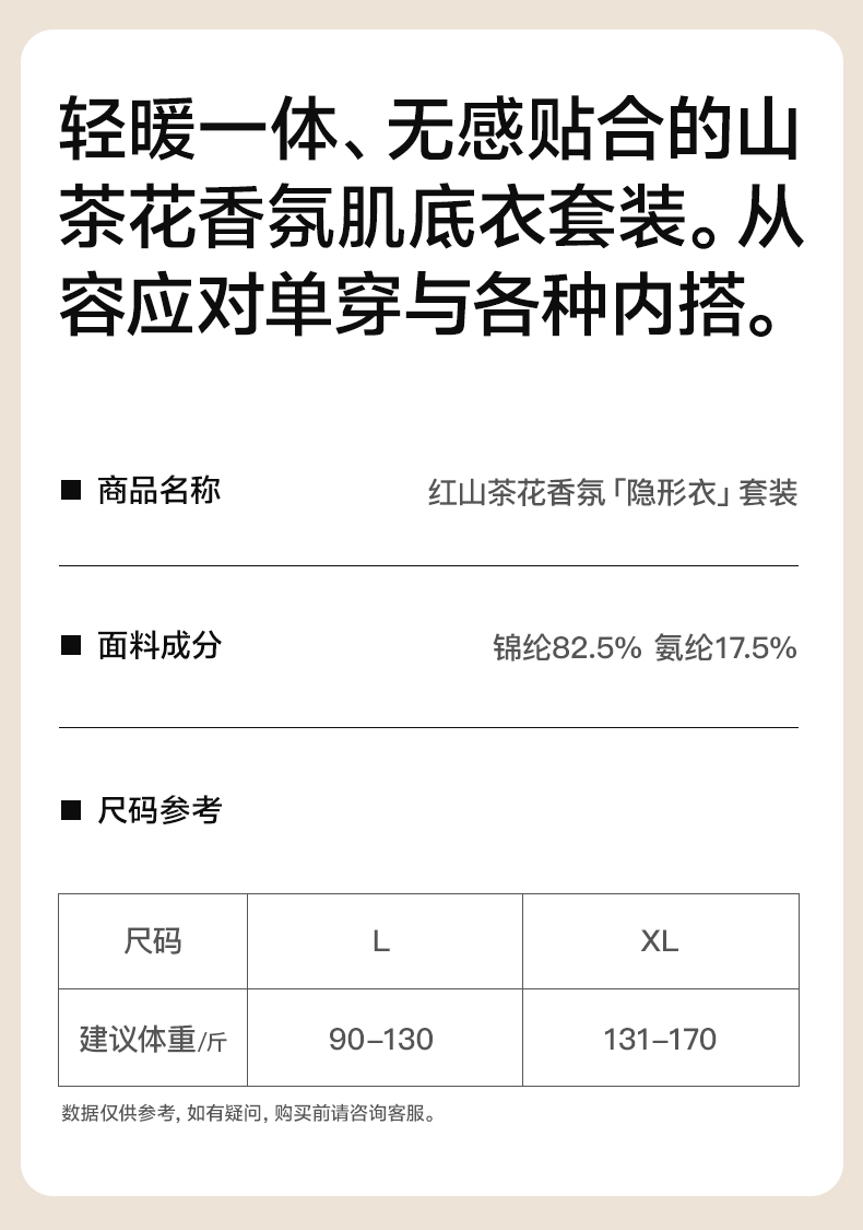 优选丨【两套装】草本初色山茶花香氛恒温肌底衣套装 保暖玻尿酸套装 5551款