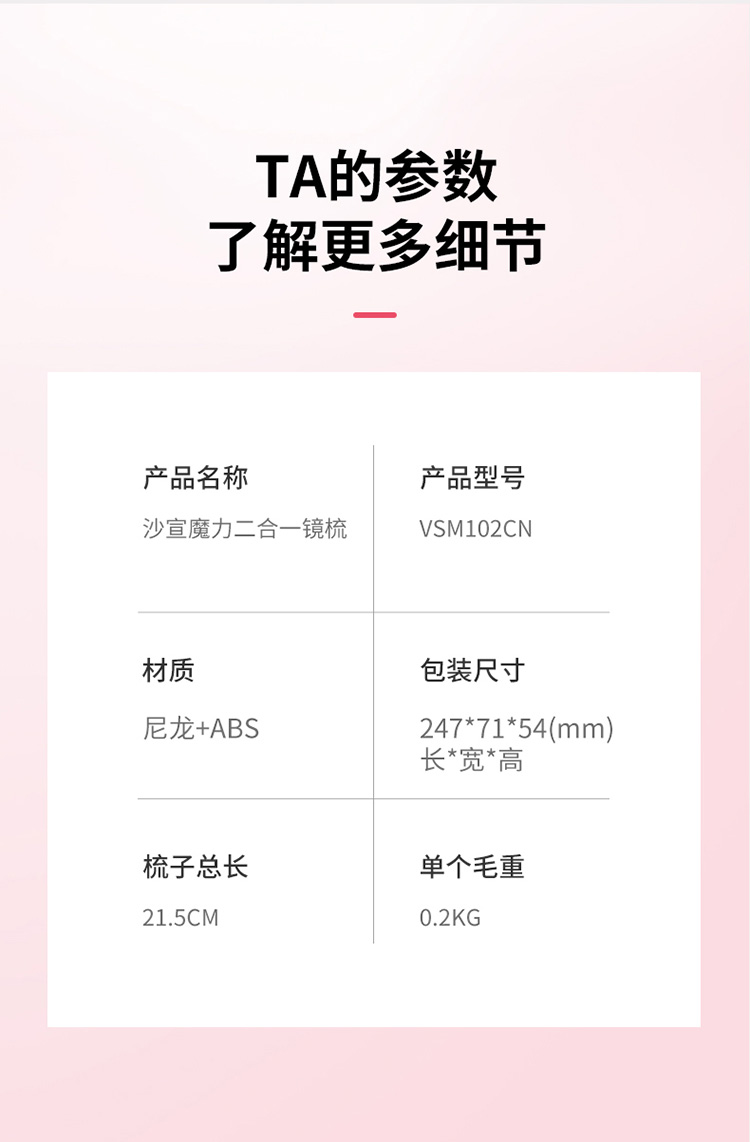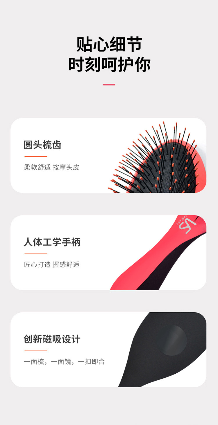 沙宣(VS) 女士梳子 气垫梳 护发梳 镜面梳子二合一VSM102CN