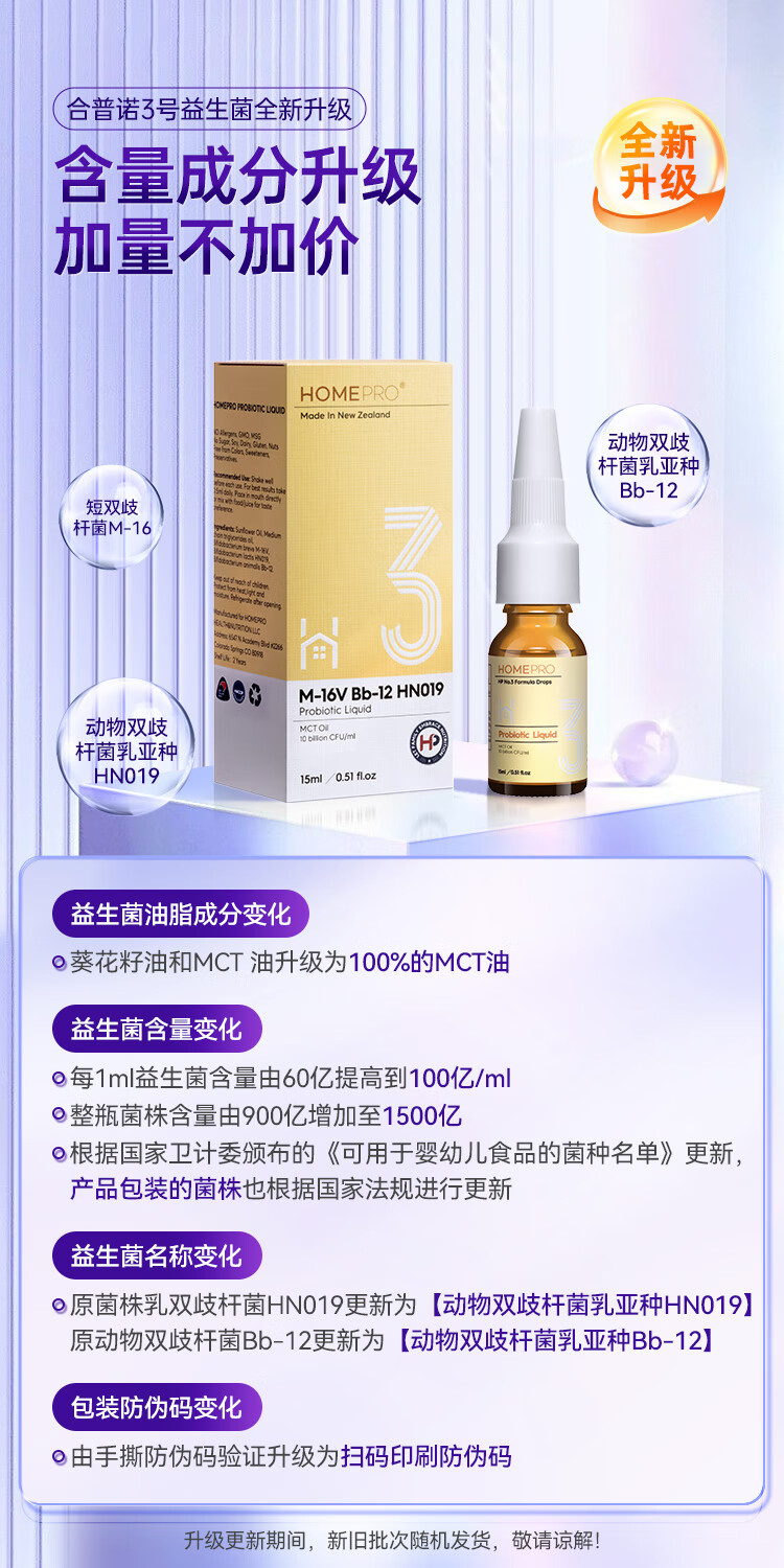 HomePro合普诺3号爱生乐益生菌滴液饮品15ml/瓶