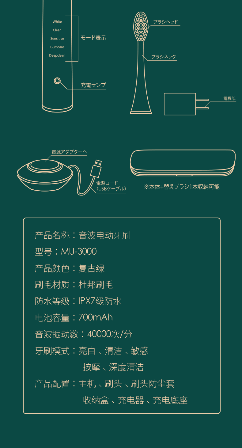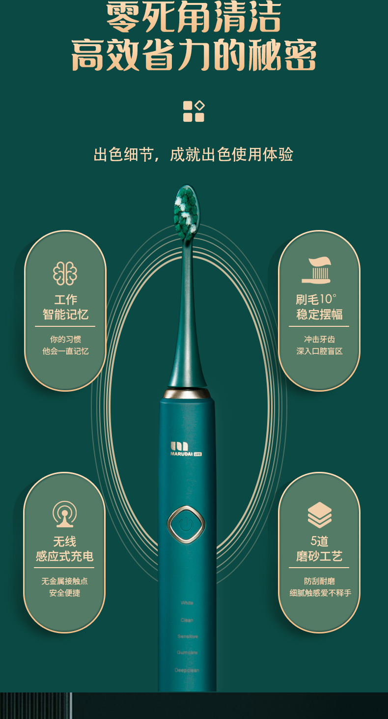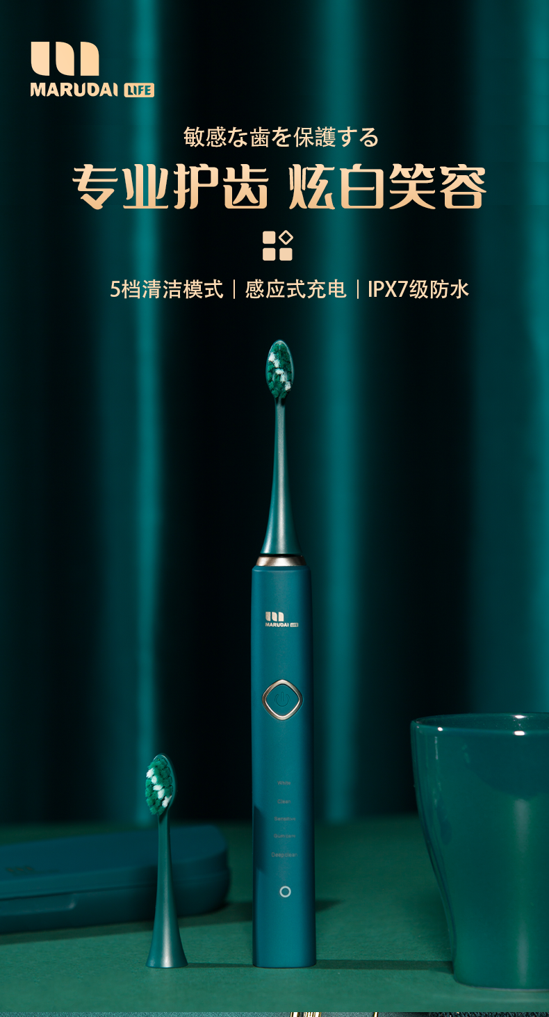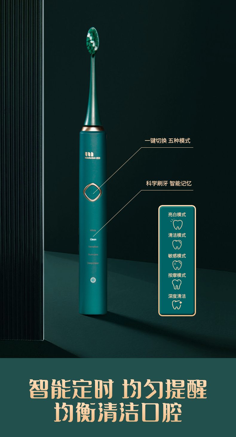【特卖】Marudai 丸太 高端款电动牙刷HW 墨绿色(展示品,有开盒痕迹/轻微污渍/防尘盖缺失,介意勿拍)
