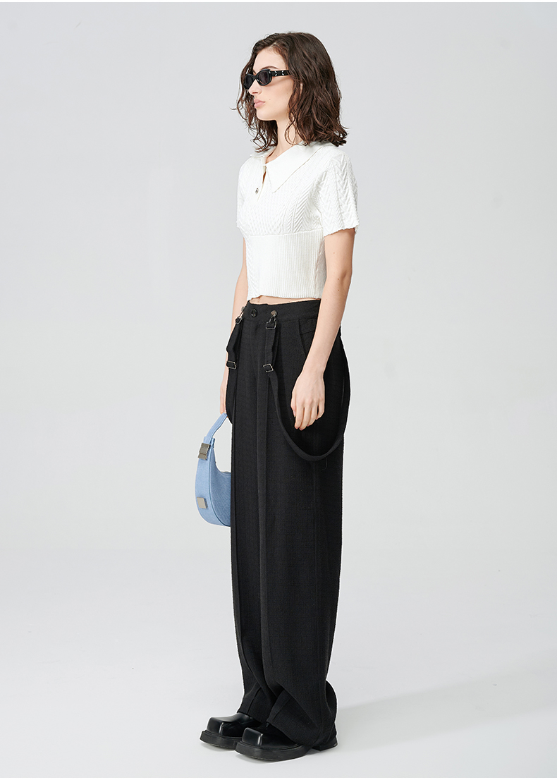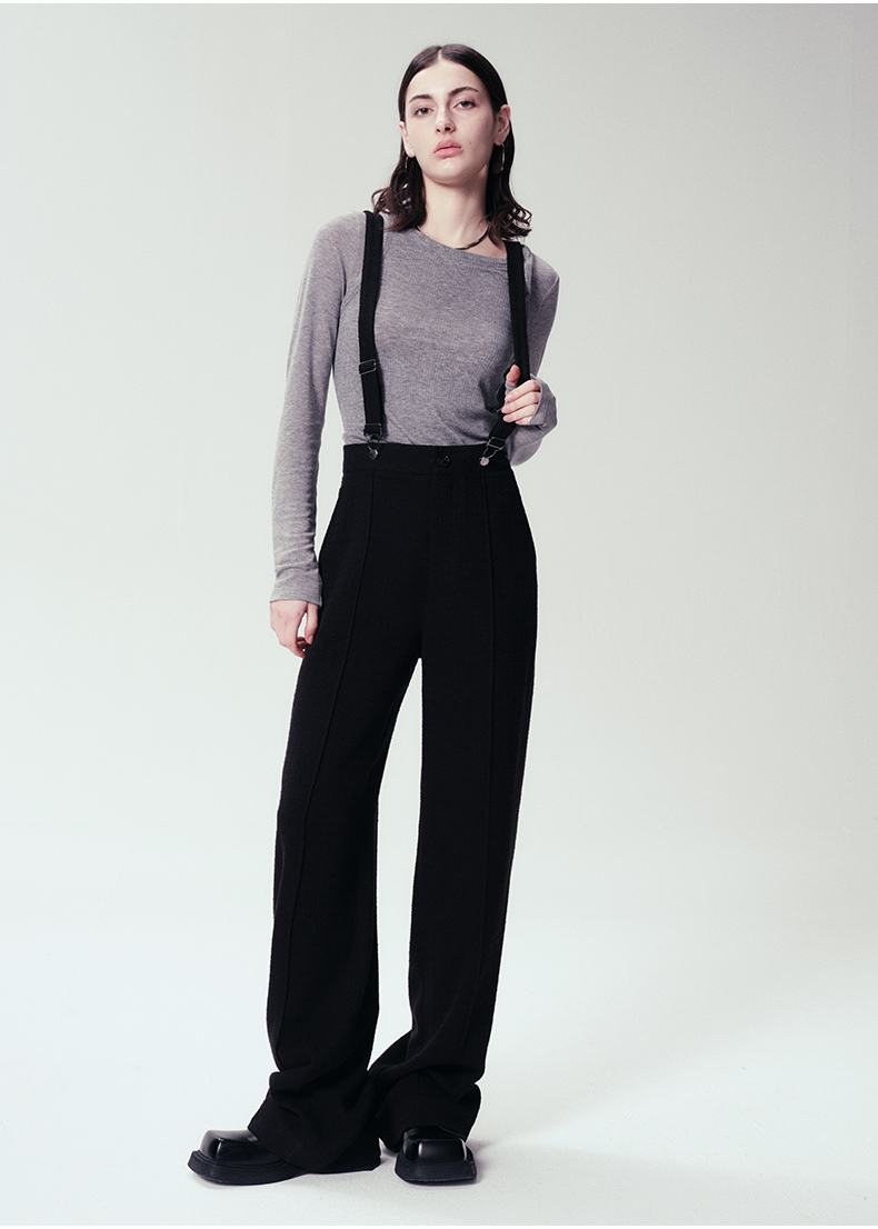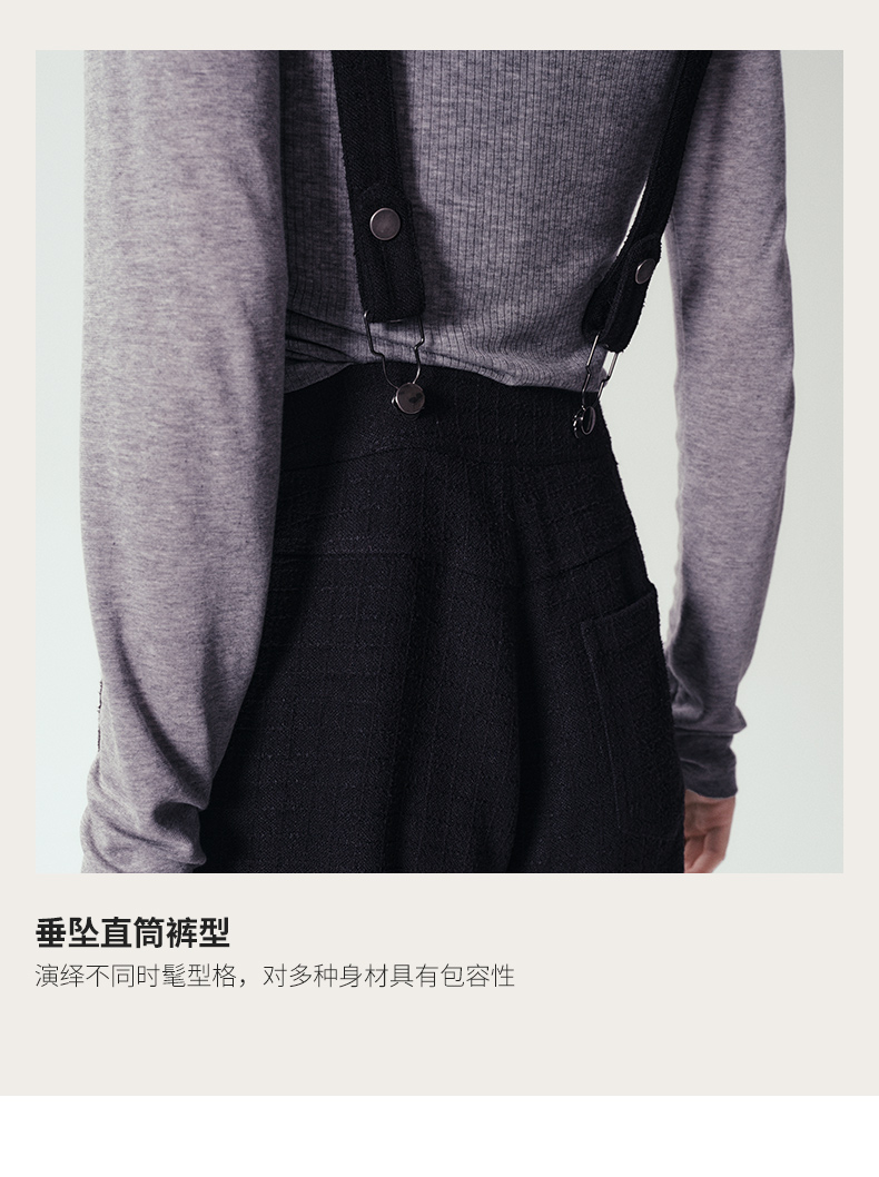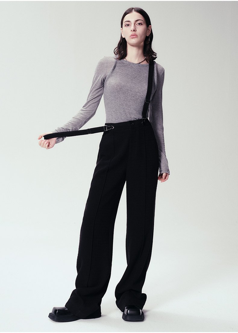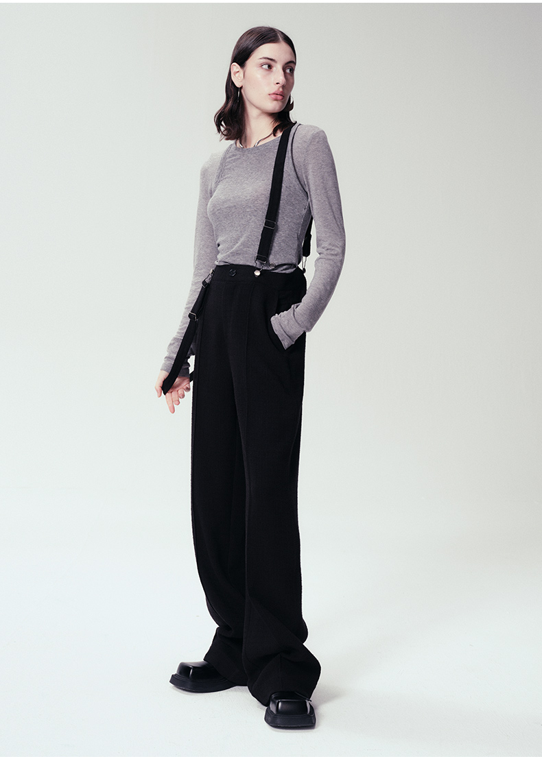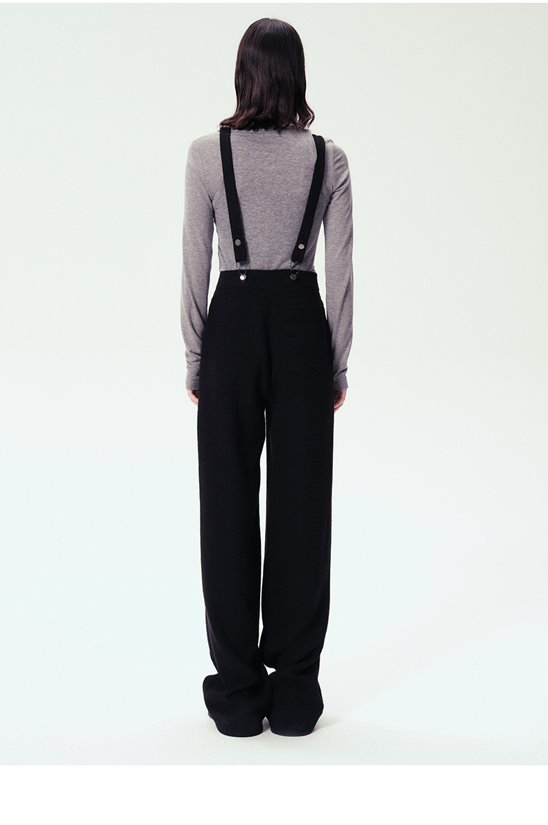 Self Who黑色休闲背带裤女2024春新款通勤原创设计垂感直筒阔腿裤