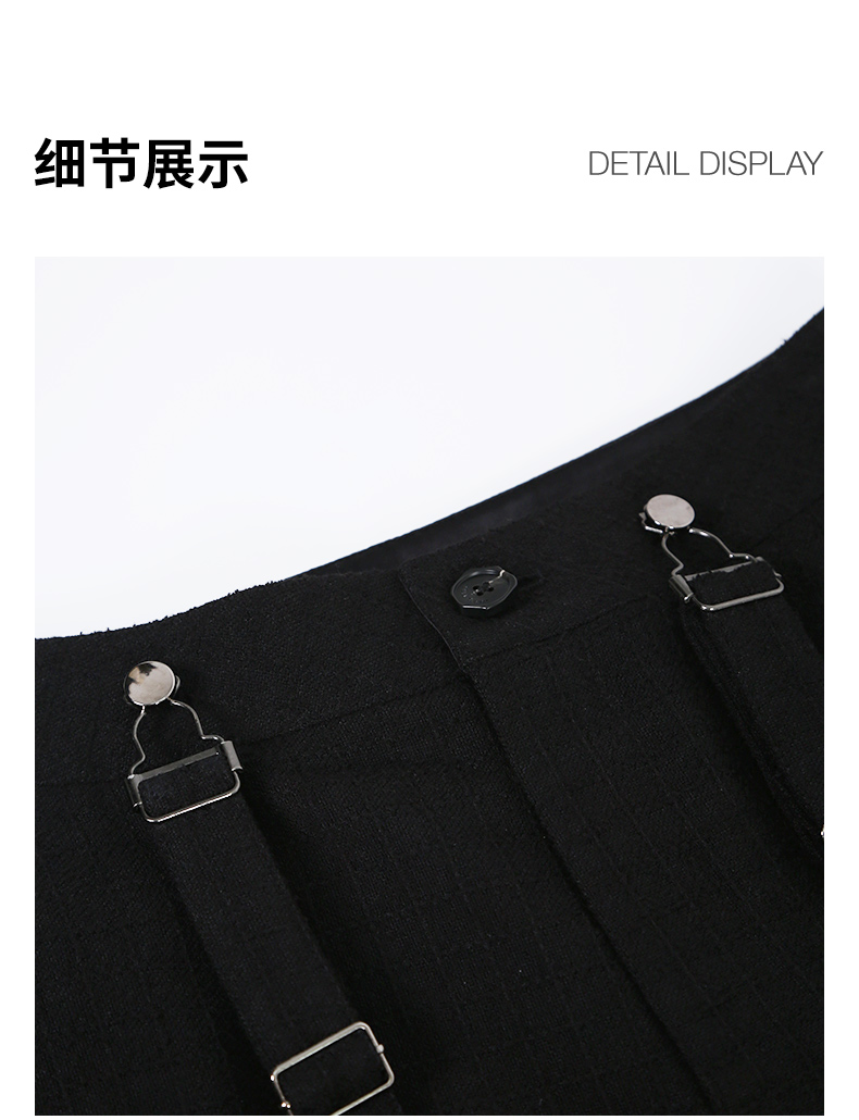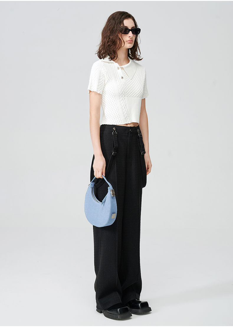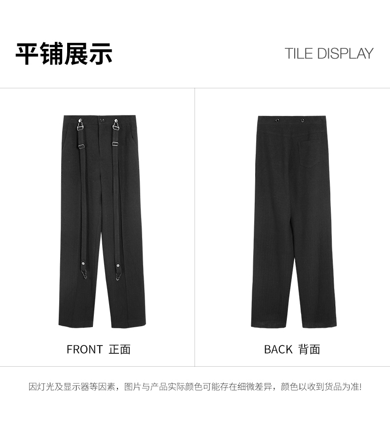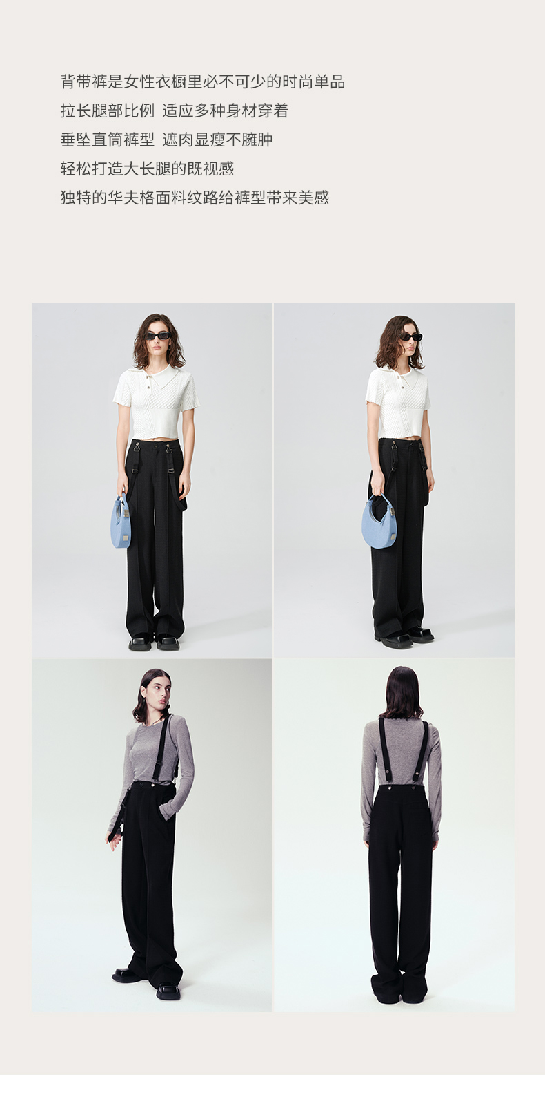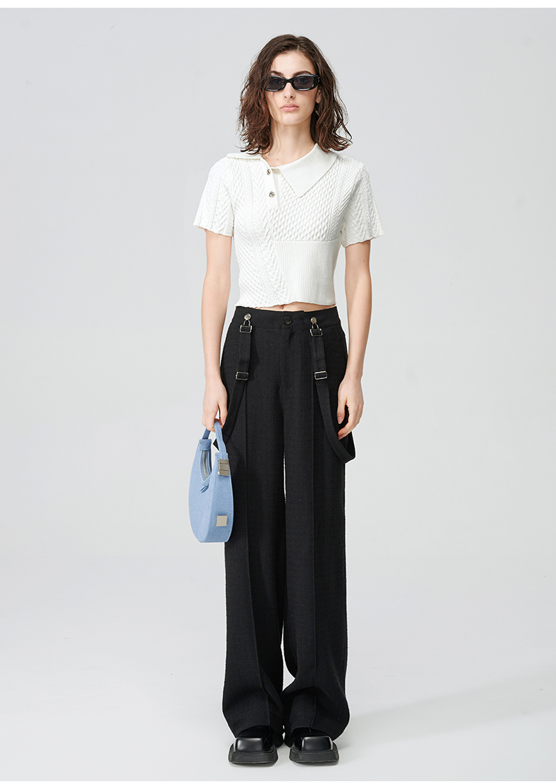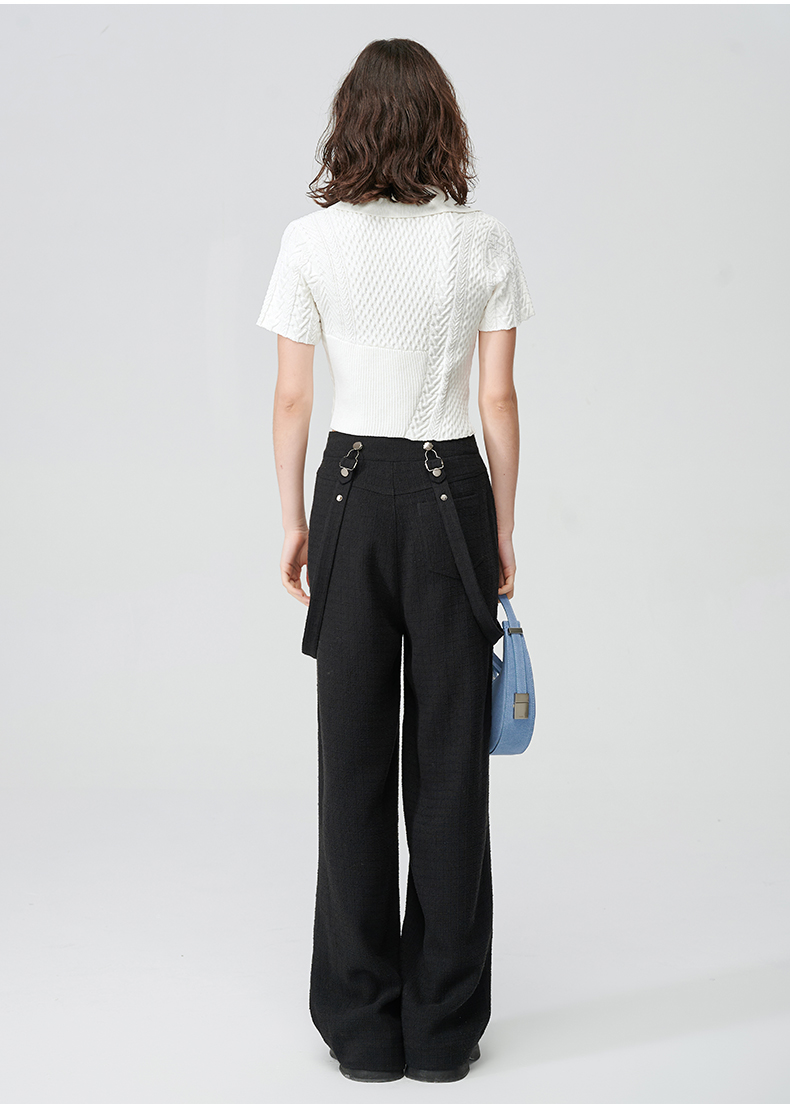 Self Who黑色休闲背带裤女2024春新款通勤原创设计垂感直筒阔腿裤