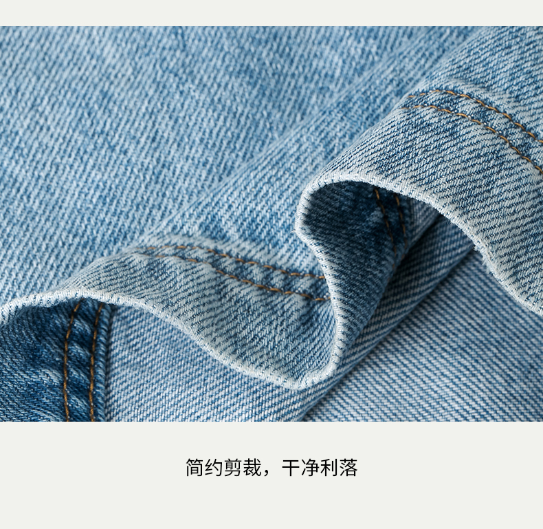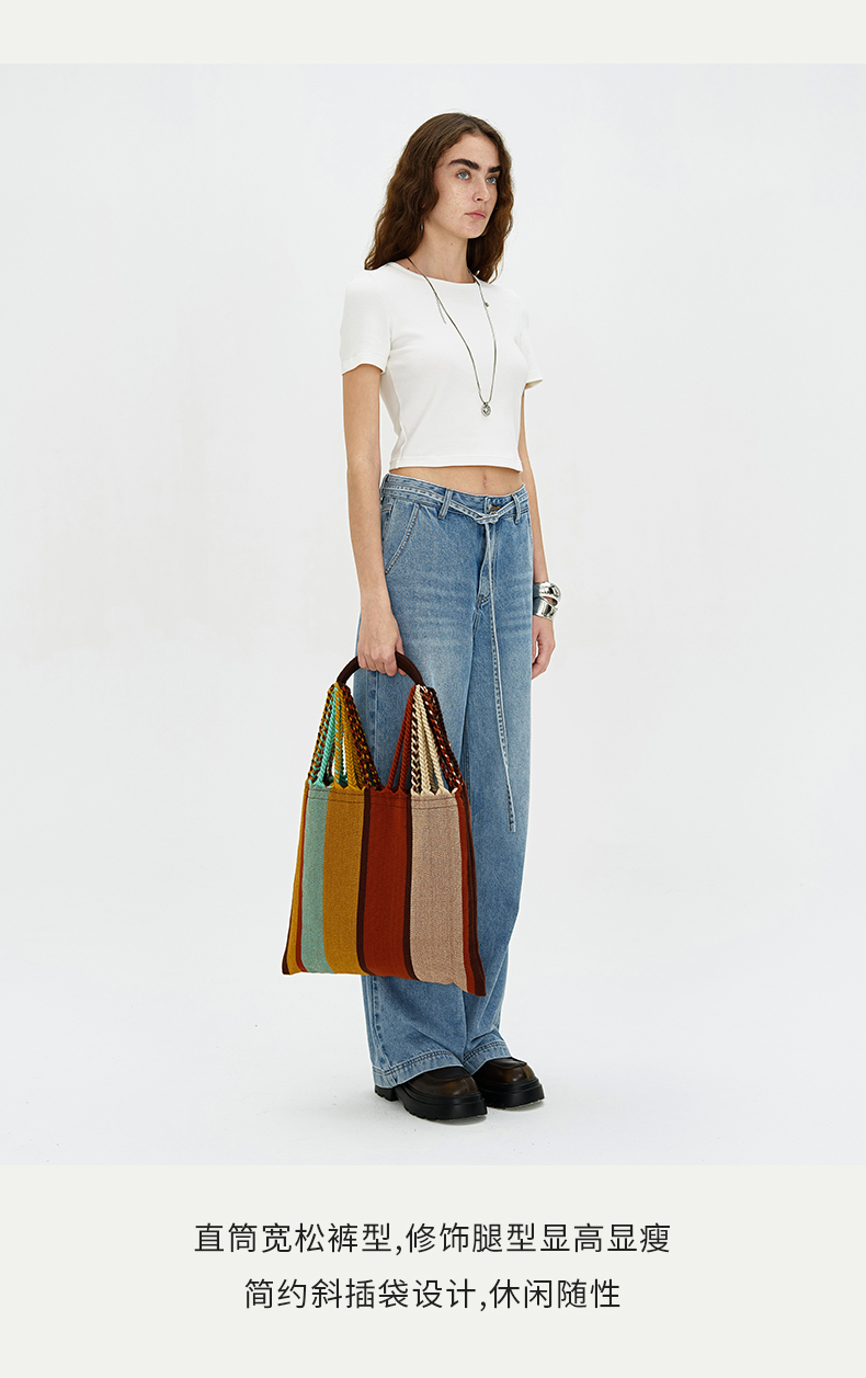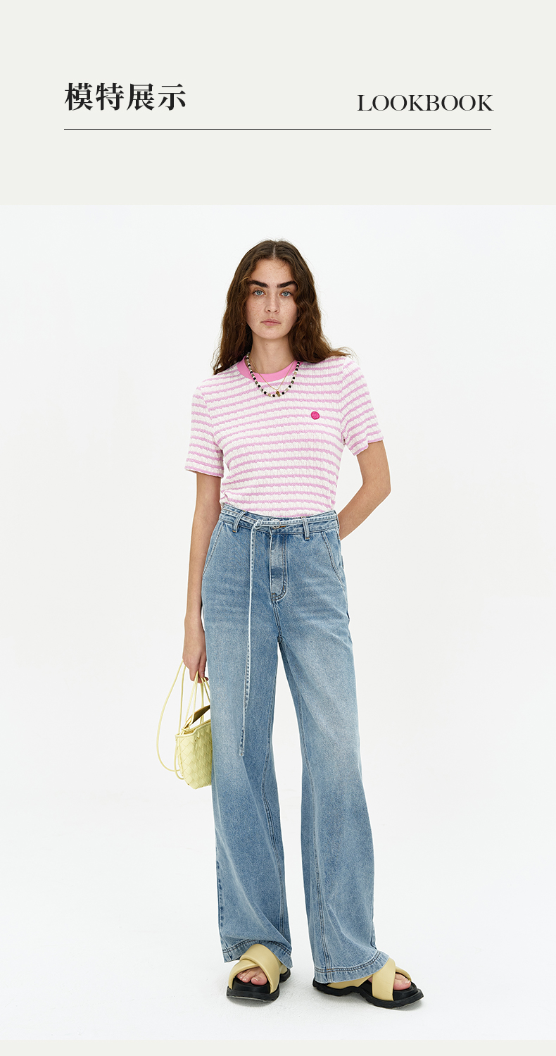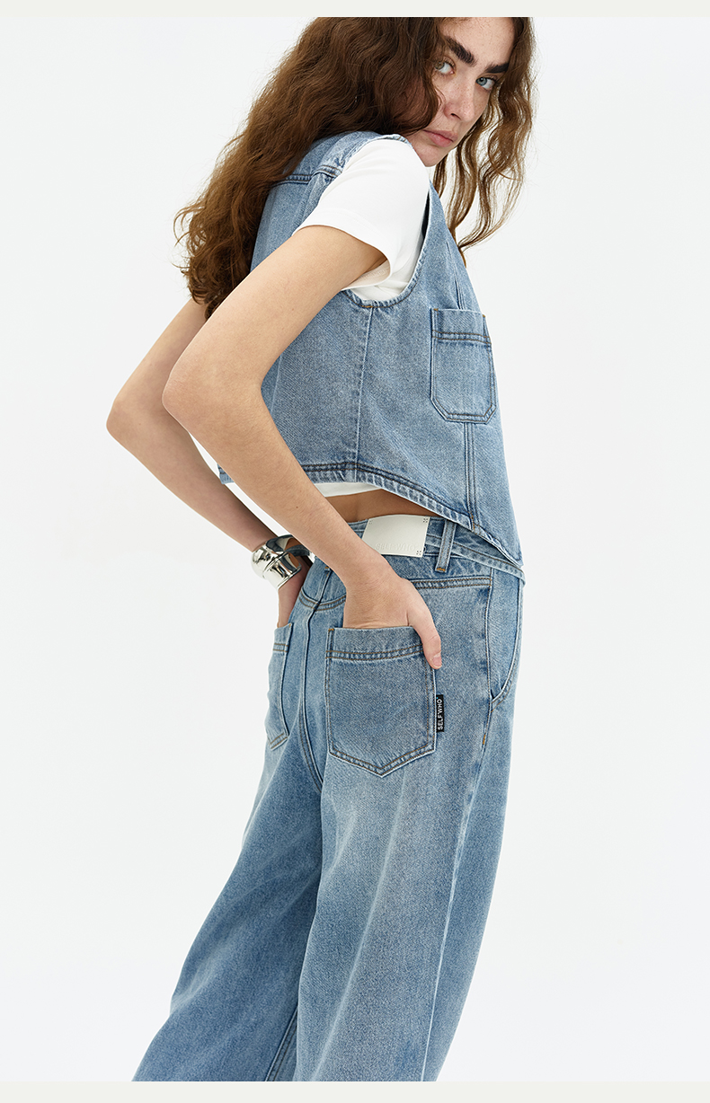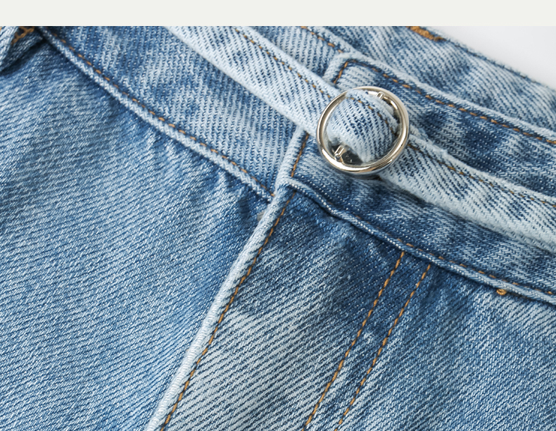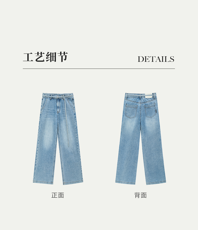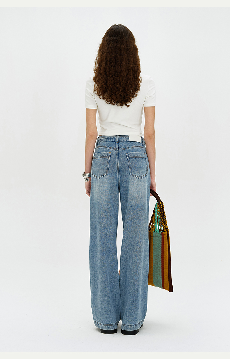SELFWHO浅蓝色牛仔裤女夏2024新款复古洗水百搭显瘦腰带直筒长裤