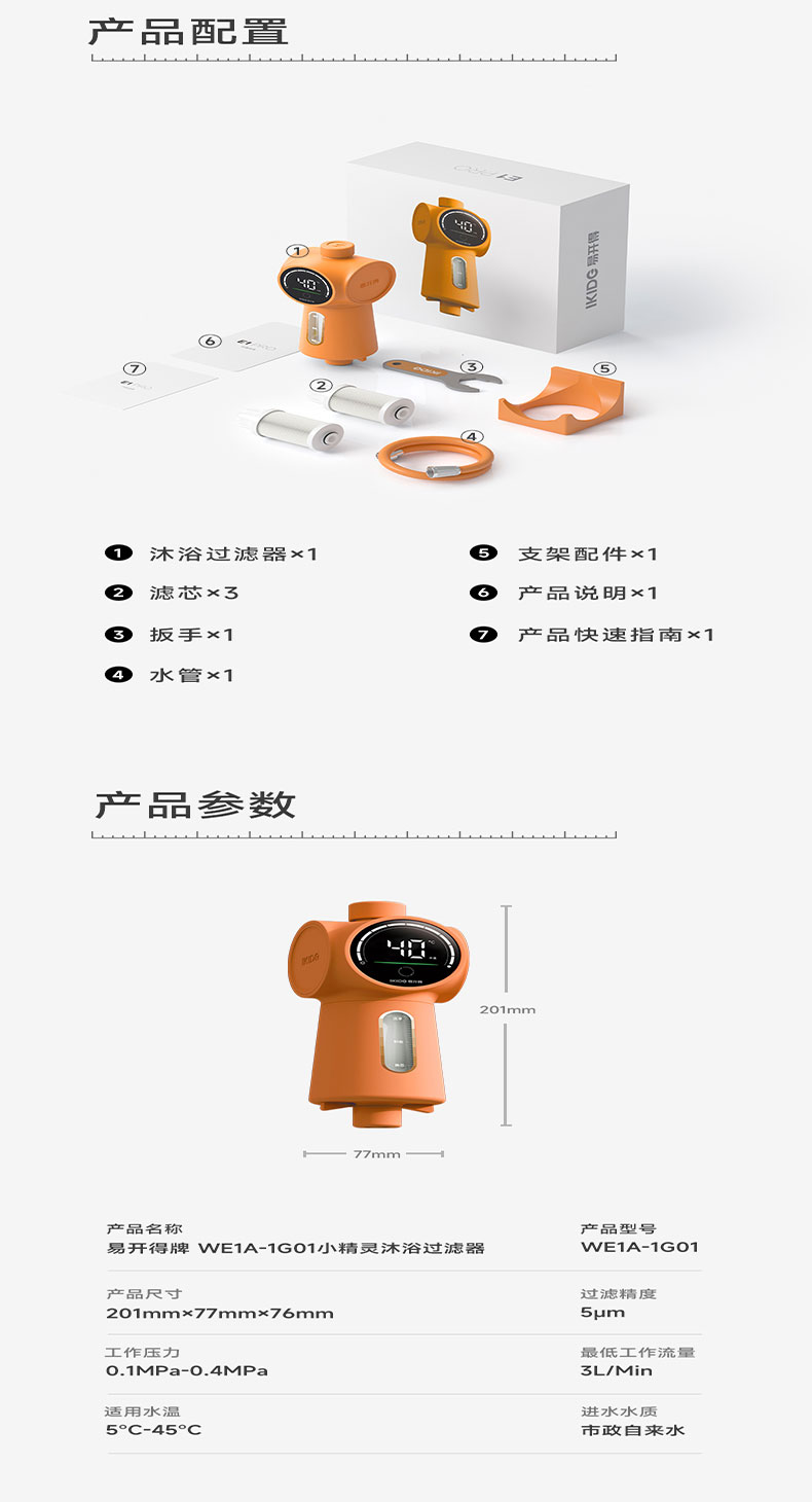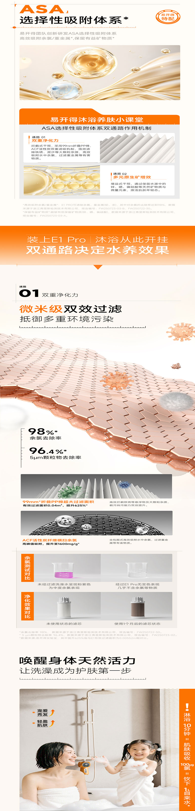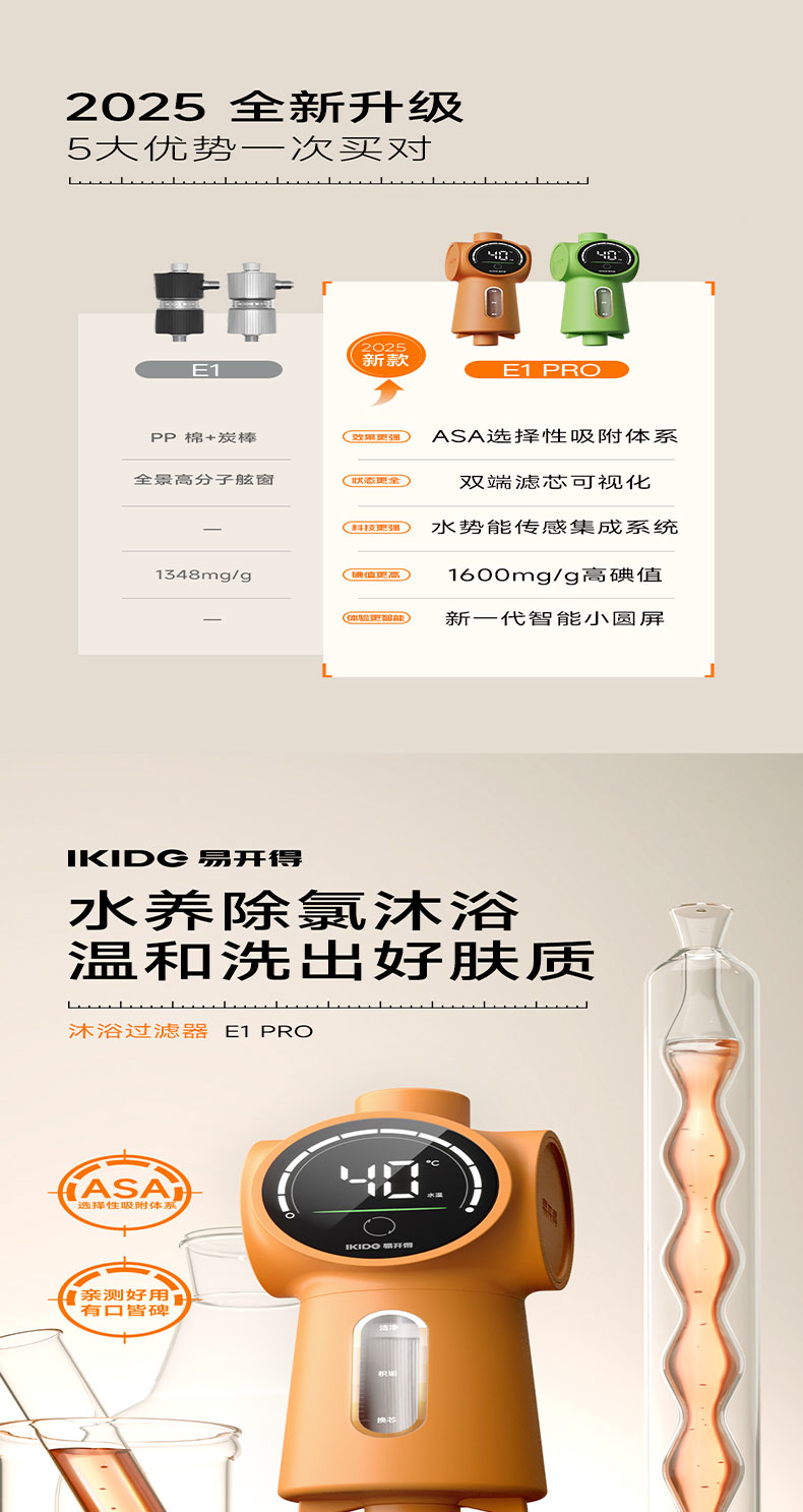 易开得E1Pro美肤沐浴过滤器花洒前置过滤器家用浴室洗澡滤水软水