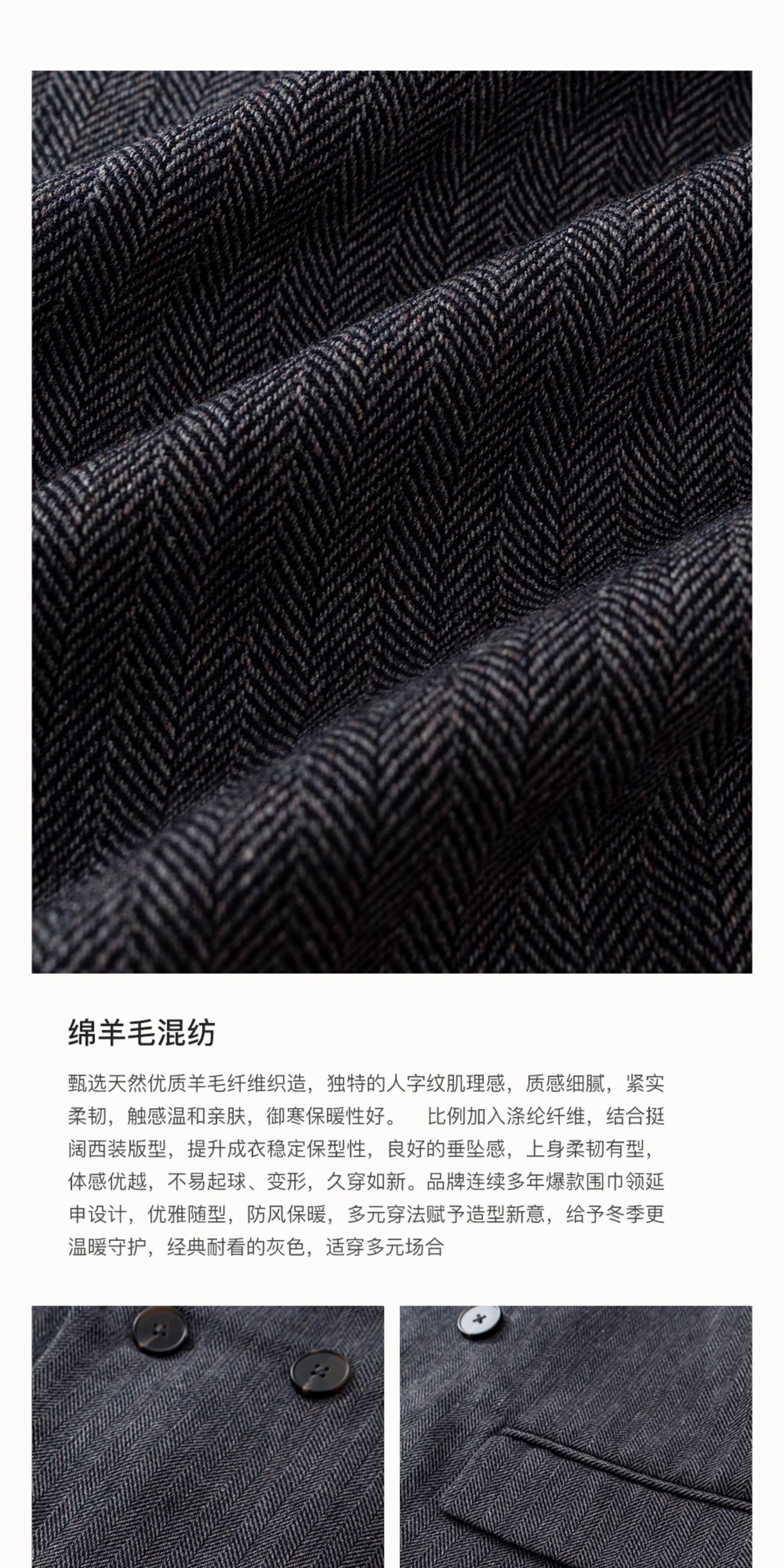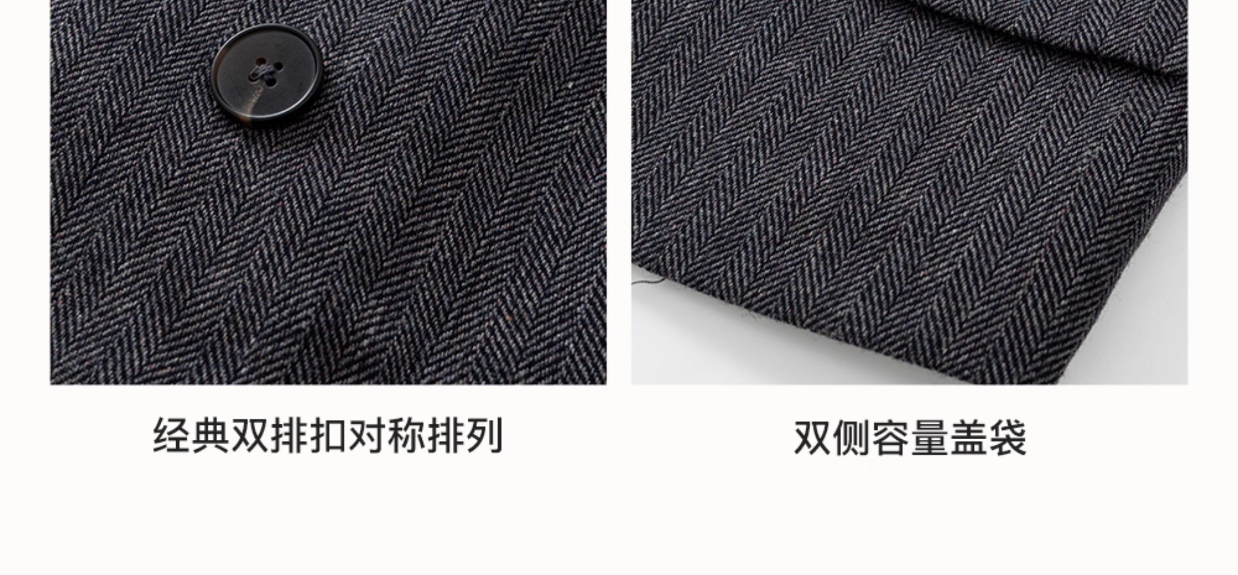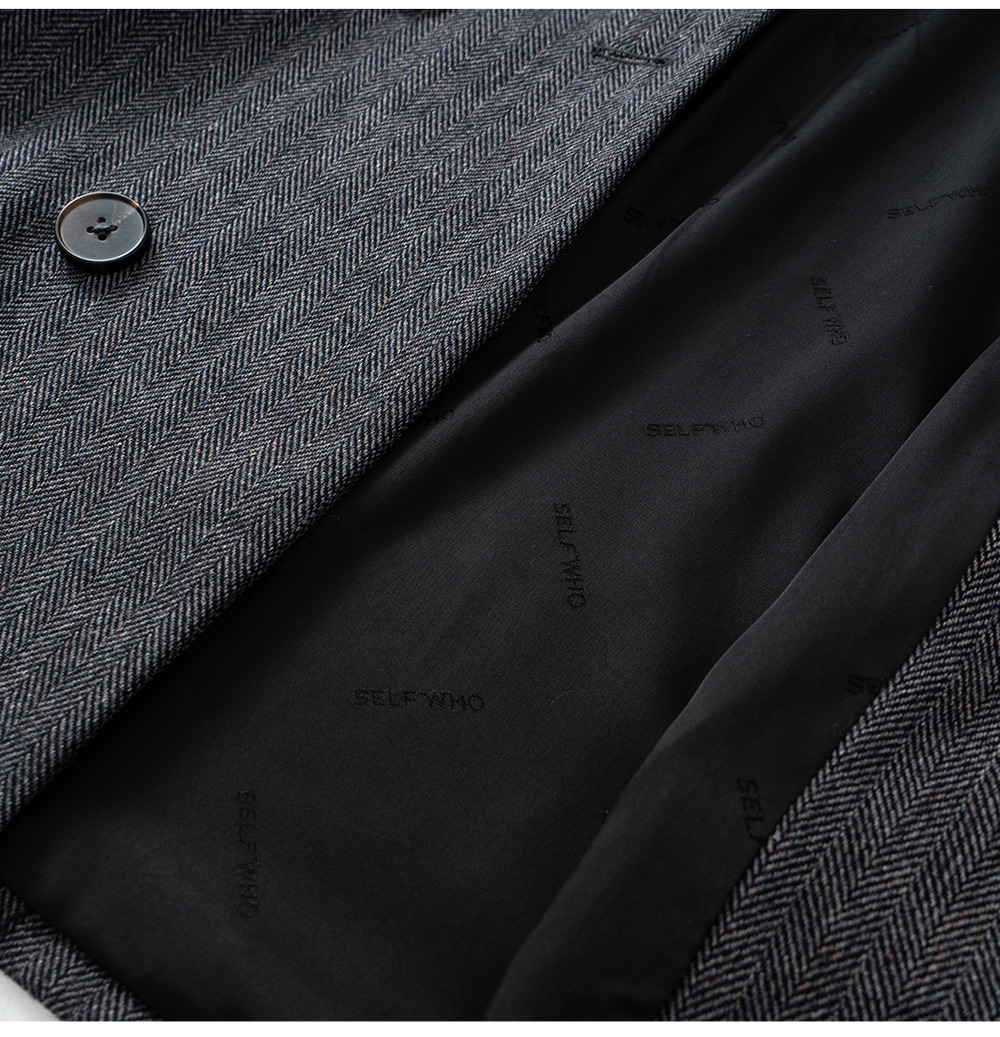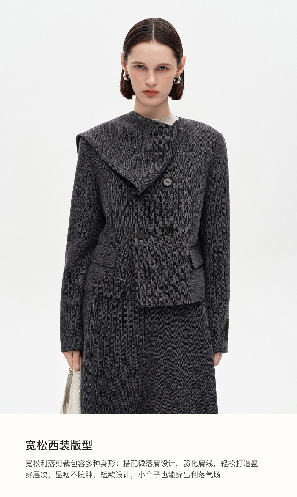 SELFWHO羊毛混纺经典围巾领西装女2025冬新款人字纹双排扣短外套