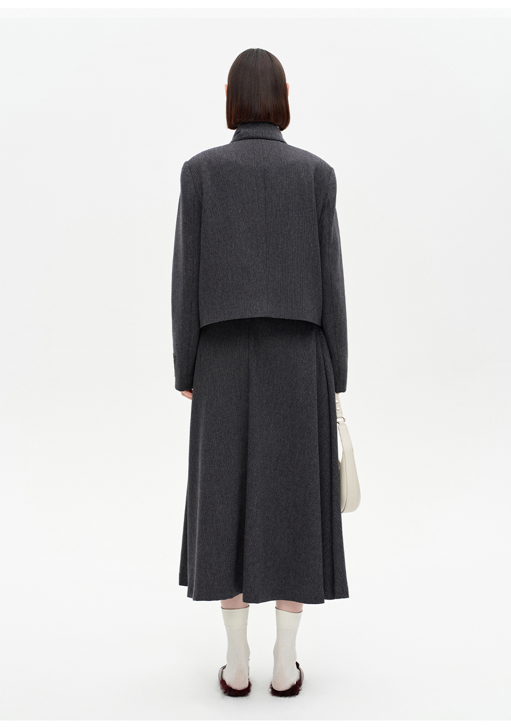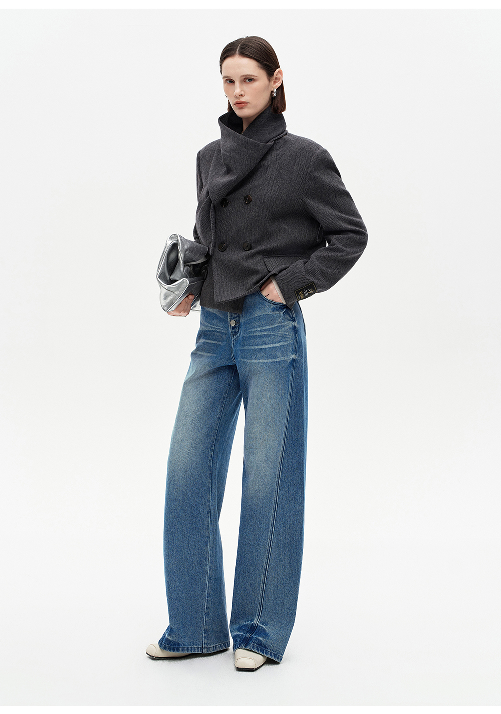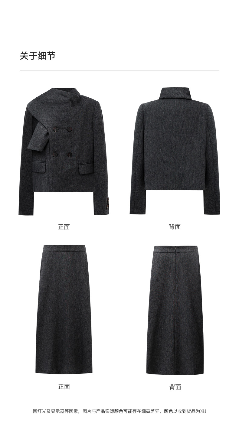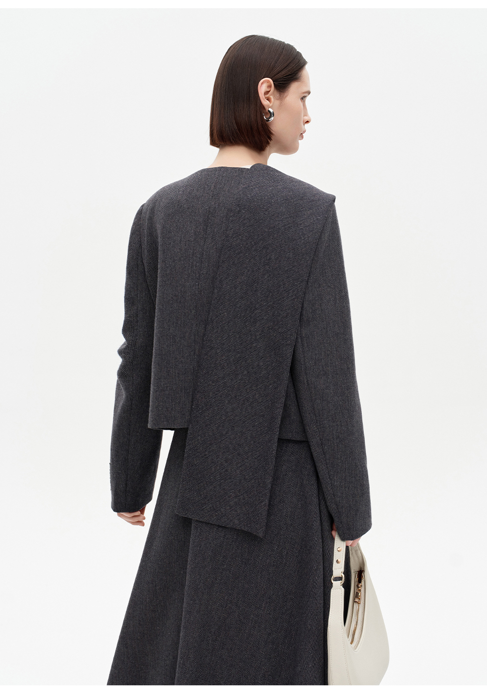 SELFWHO羊毛混纺经典围巾领西装女2025冬新款人字纹双排扣短外套