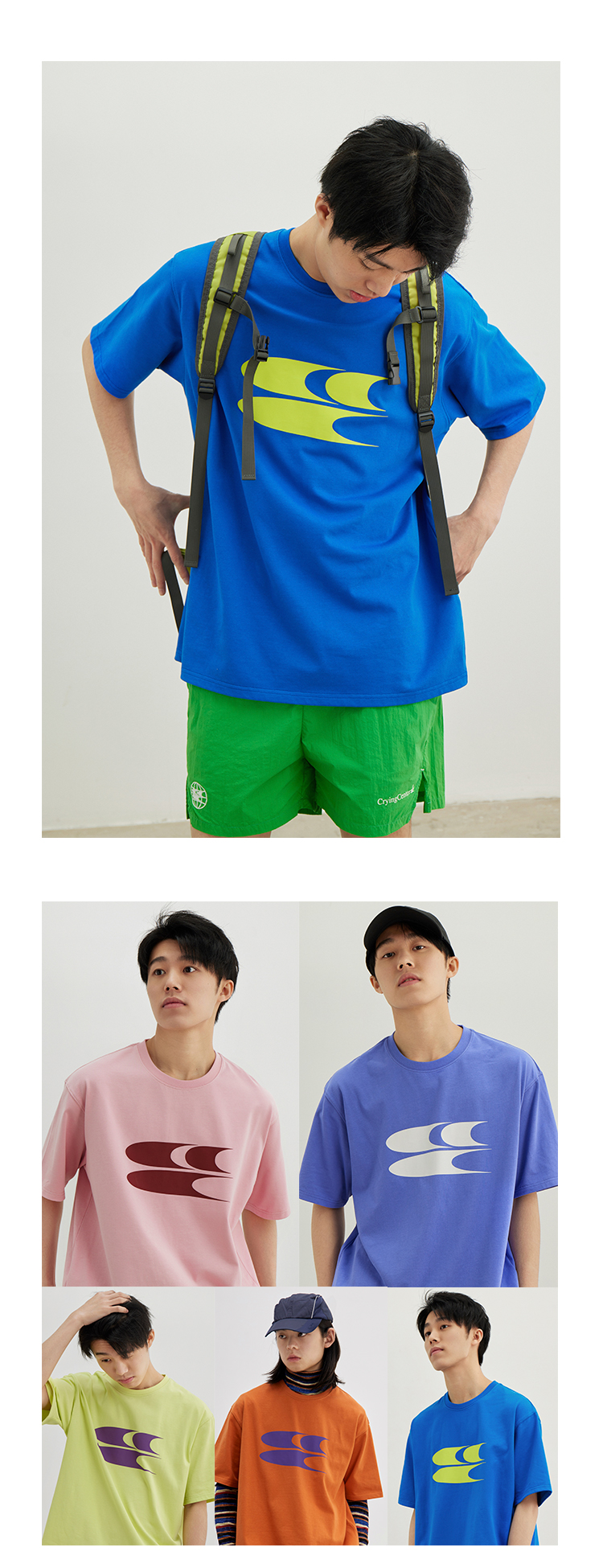 CryingCenter夏日调色盘 多色经典LOGOT恤 宽松圆领套头哭喊中心