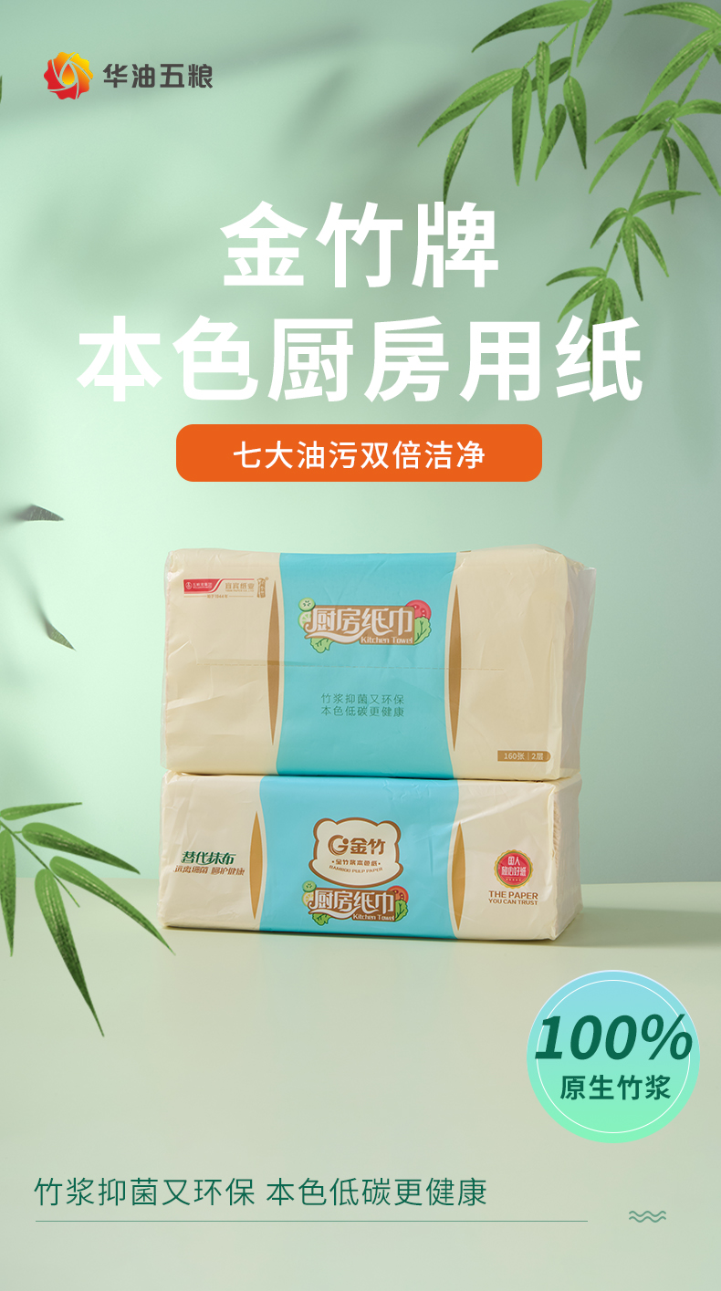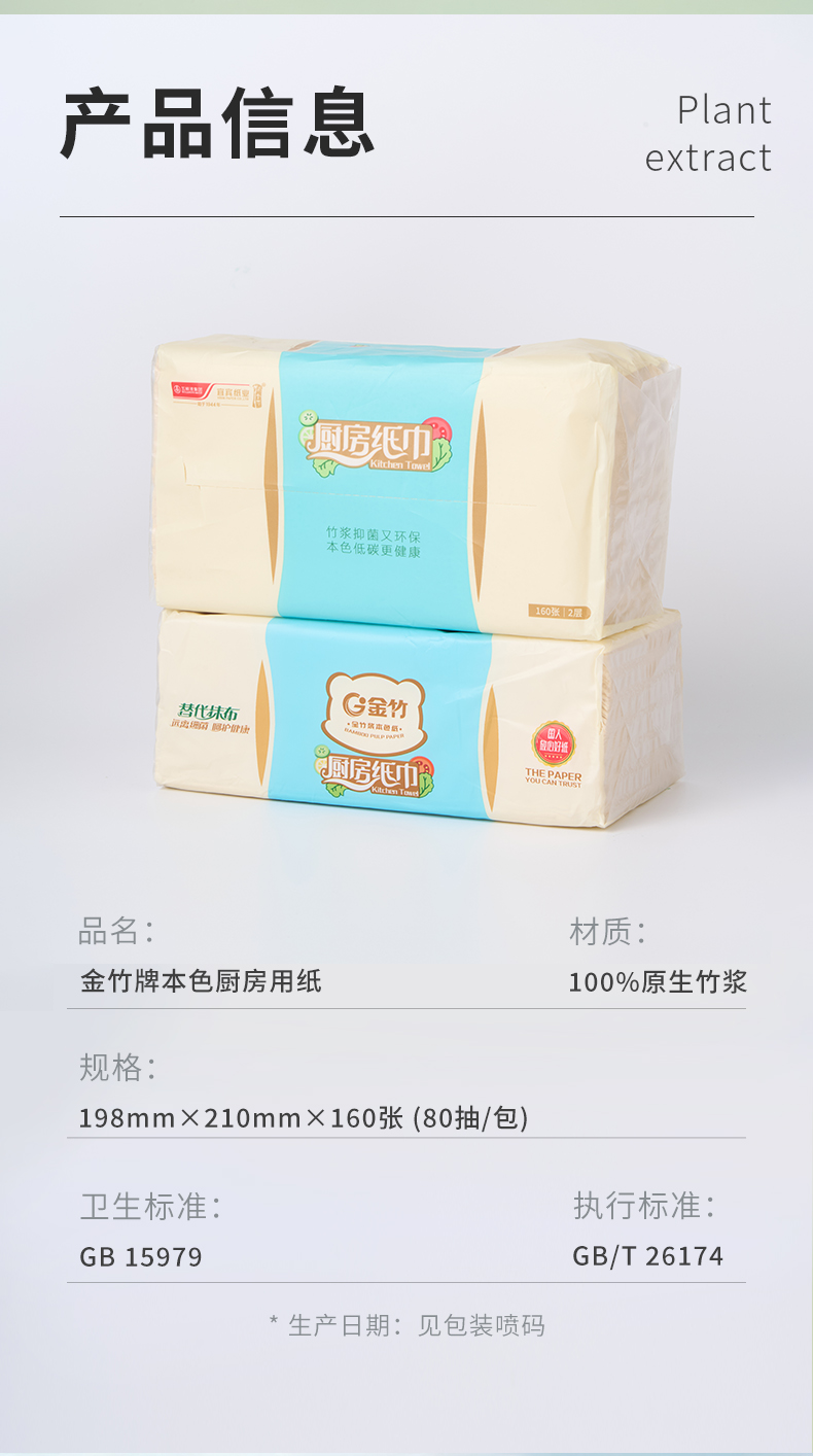 金竹牌本色厨房用纸198mm*210mm*2层*80抽 12包整箱装