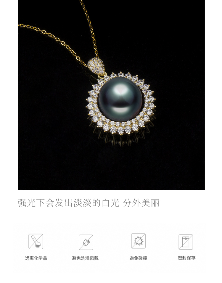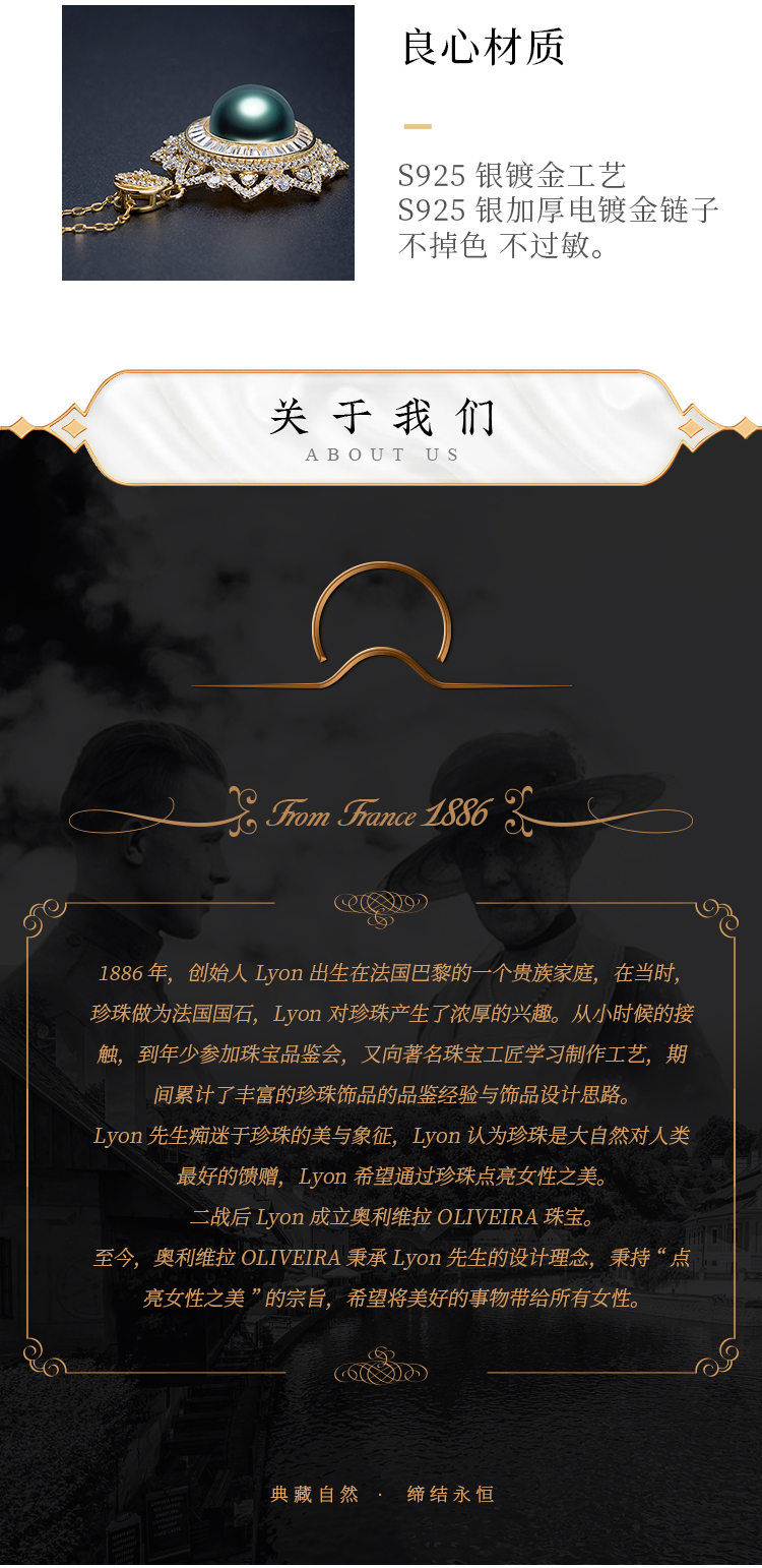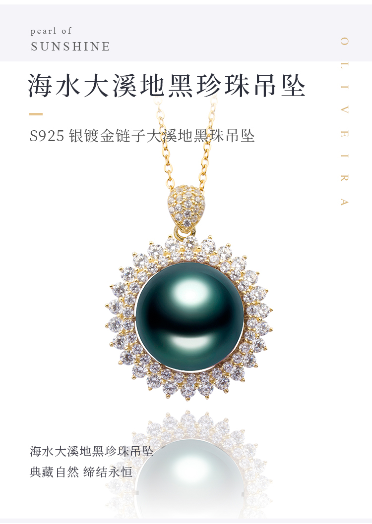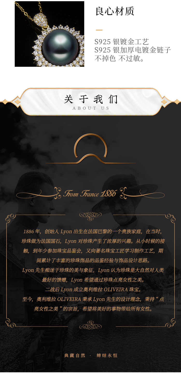 优选丨奥利维拉OLIVEIRA 大溪地黑珍珠吊坠S925银项链 珍珠直径10-11mm