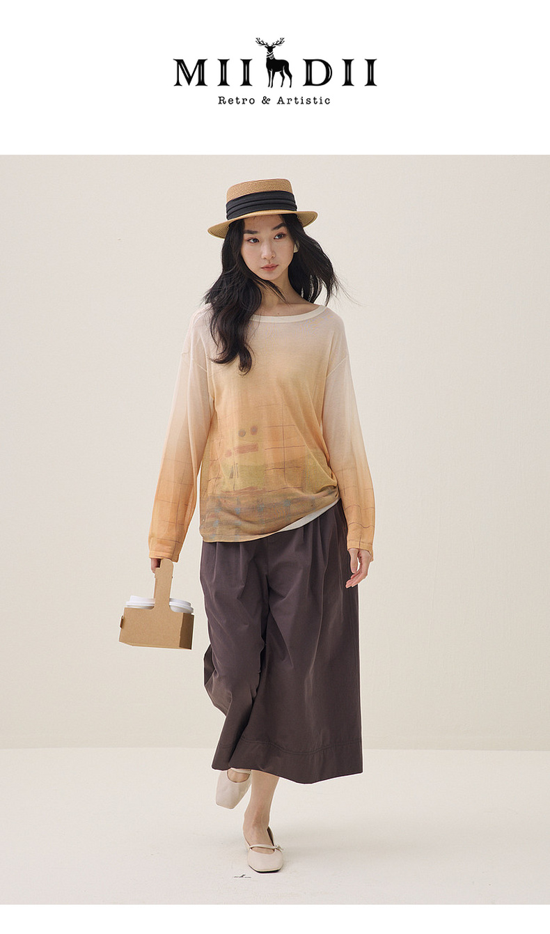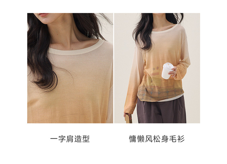 谜底针织衫长袖2026夏季新品一字肩复古时髦印花毛衣女262MZ0766