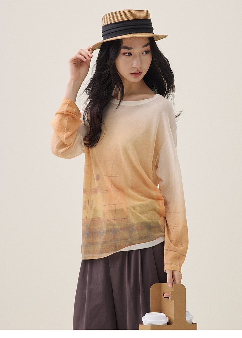 谜底花色衬衣长袖2026春季新品原创彩铅印花艺术衬衫女261MC0211