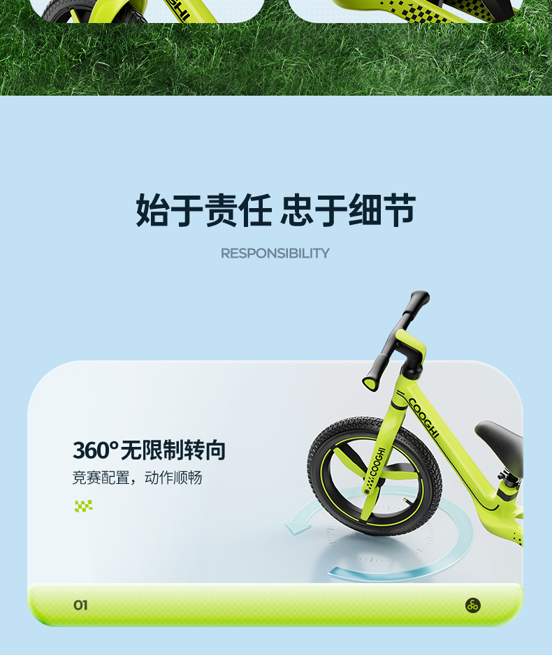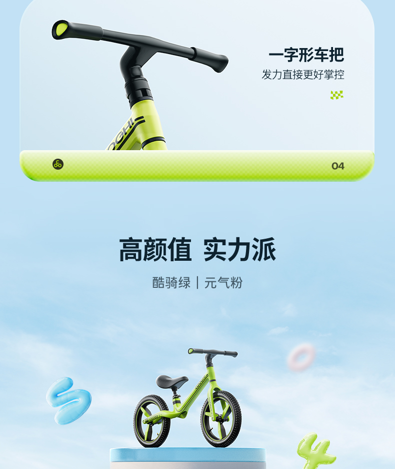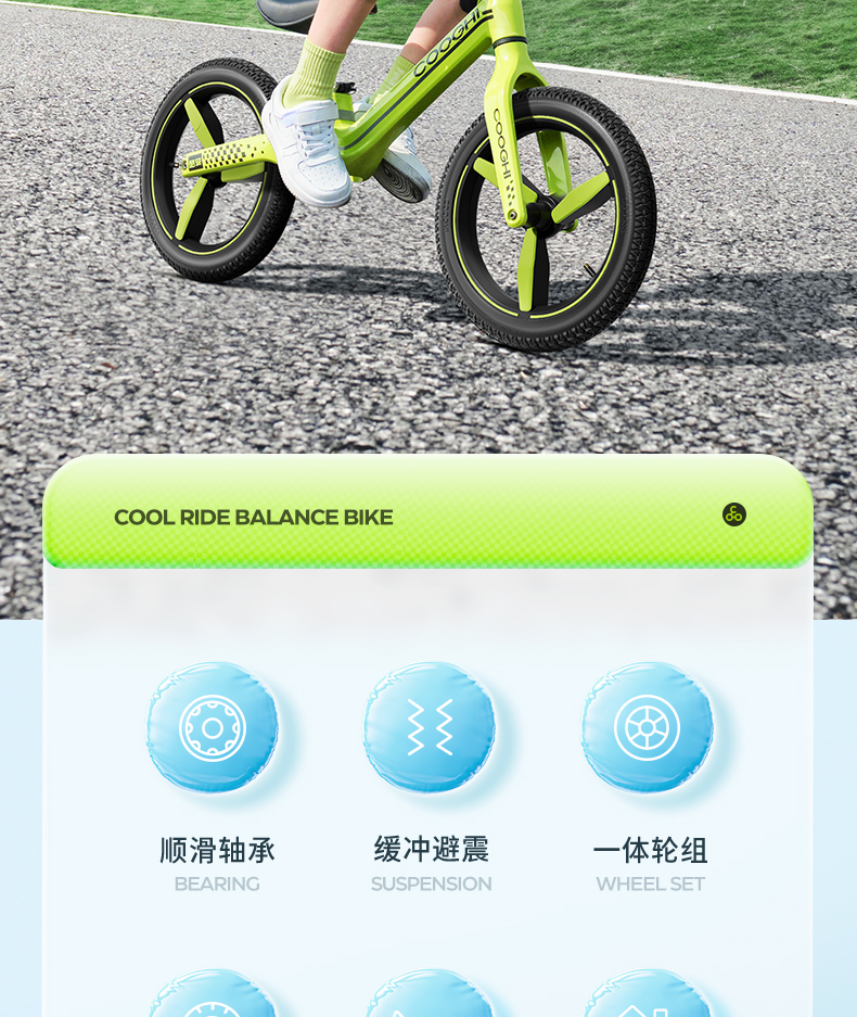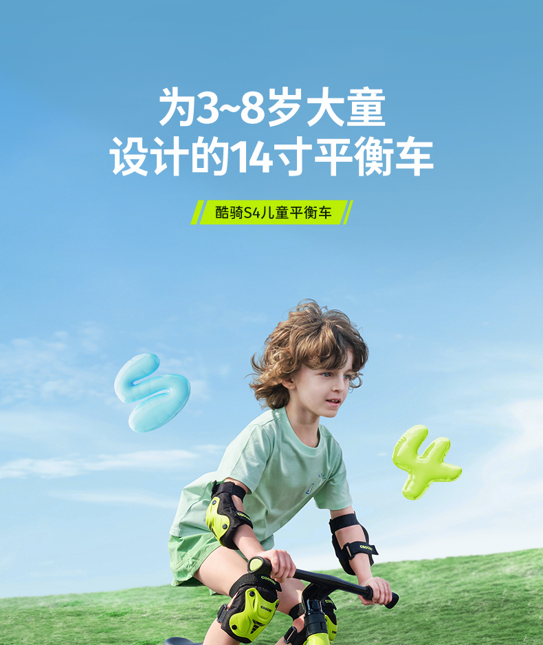 COOGHI酷骑14寸儿童平衡车S4-无脚踏滑行3-6-8岁
